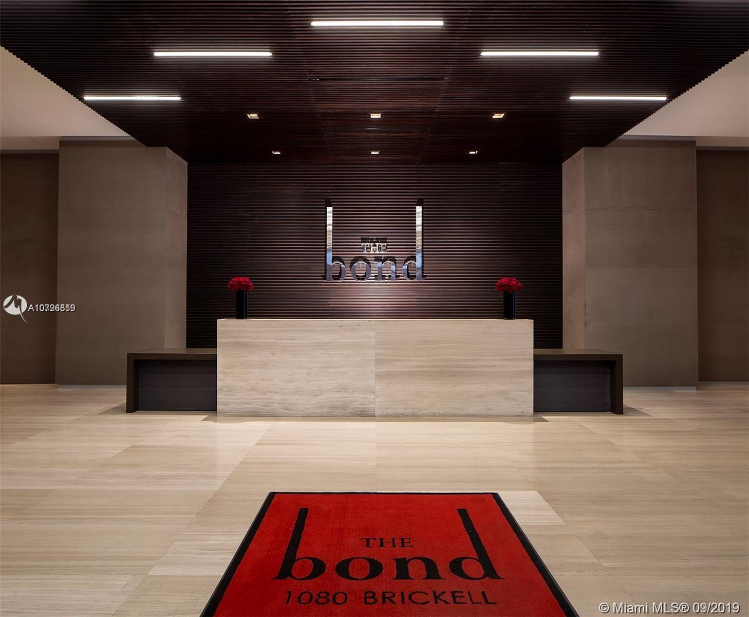 Amazing unique condo 1 bedroom + 1.5 bath at the Prestigious Bond at Brickell Condominium. costume made closet, Italian porcelain floors. Gourmet kitchen with top of the line appliances. Beautiful ocean view from Living area and bedroom. Modern building with 24 hour concierge, valet and security. The and covered assigned parking. Perfectly located in the heart of Brickell area. Walking distance to Merrick Brickell Village, Brickell City Center, Restaurants, bars and financial area. Building offers many amenities: Children room, world class fitness center, roof top pool and sundeck, club room, luxury health spa, high speed internet. Tenant occupied, month to month. Equal Housing Opportunity.