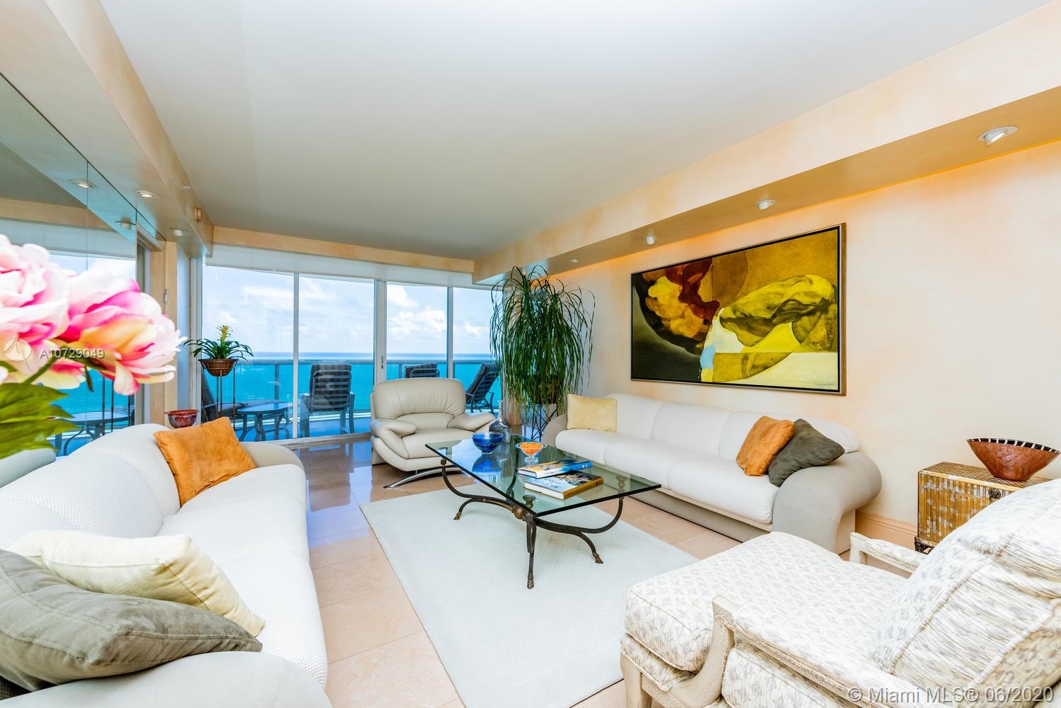 Beautiful turn key unit ready to move in direct ocean front and direct city view, working conditions kitchen aid appliances well maintained from original owner. Marble floor in the main areas and brand new carpet in bedrooms in optimal conditions. The unit is sold furnished owner used the property only two to three months of the year. Experience ultimate oceanfront living in this beautiful property in exclusive Sunny Isles area. Property comes with one cover parking space deed it to the unit and with more extra parking space at Valet area. Live a life others can only dream of in your oceanfront property. Call listing agent for more information. PRICE REDUCED TO SELL...OWNER MOTIVATED!!..