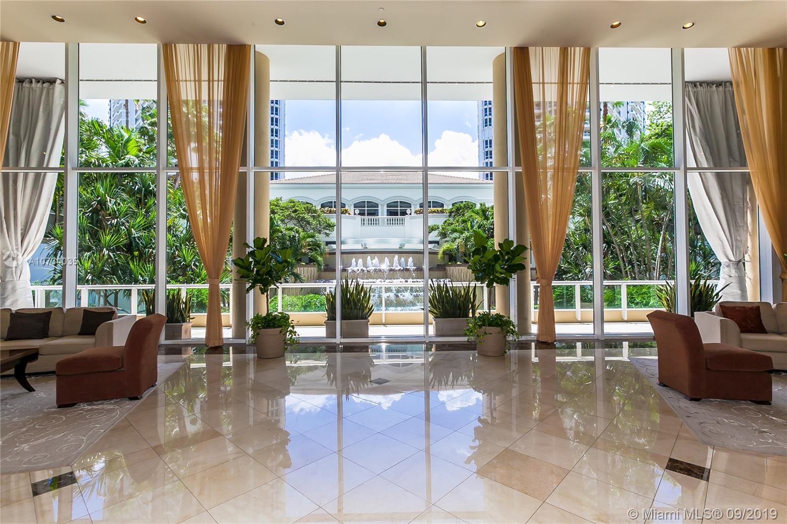 One of the best floorplans in Aventura, with two bedrooms facing the ocean, this pristine SE corner has panoramic views of Golden Beach, the Intracoastal and the ocean. Beautiful, porcelain throughout, huge closets. Elegant, modern, built-in wall unit with bar. Bright, spacious, electric shades, eat-in kitchen, receded lighting. Separate laundry room. Used only as a vacation home and in move–in condition Two parking spaces, Great amenities included in the maintenance: outdoor cafe, spa & fitness center, 3 pools, tennis courts, BBQ area & kids playground. Easy to show. Call/text LA.