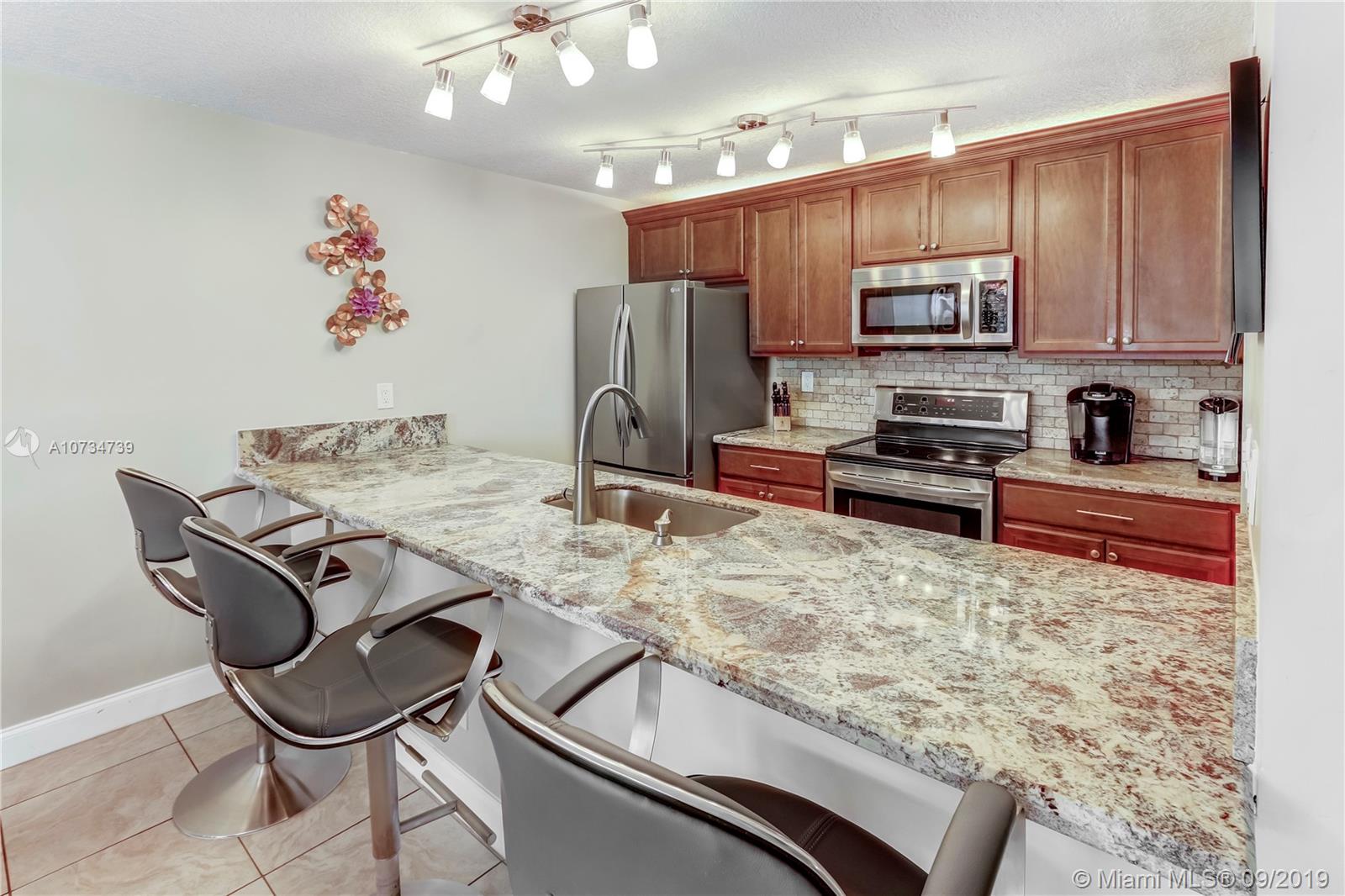 Serene golf course views from this 3 bedroom/2 bath, corner villa, updated kitchen with Bordeaux River Gold Granite Counter Tops and wood cabinetry, updated baths, tile floors throughout, newer A/C unit and tankless water heater, impact windows and sliding doors, screened private patio overlooking golf course, freshly painted this year. Community offers, pool, clubhouse, tennis courts and plenty of guest parking, Low HOA fees include landscaping. This beautiful villa is located in the City of Pembroke Pines, known for it's lush landscaping, natural beauty and "friendly small-town feel", while offering superior parks (CB Smith Park), entertainment venues, outstanding schools, hospitals, and accessibility to major highways. This rarely on the market corner villa is a must see!!!
