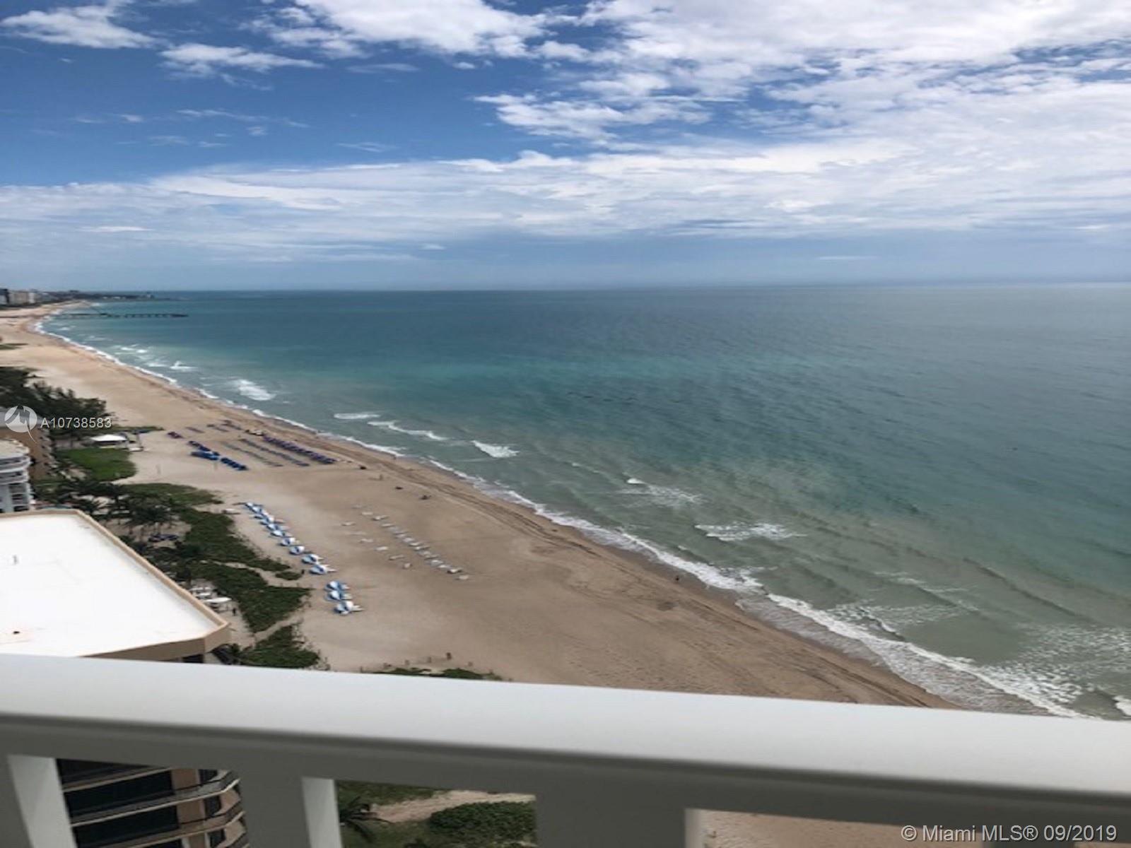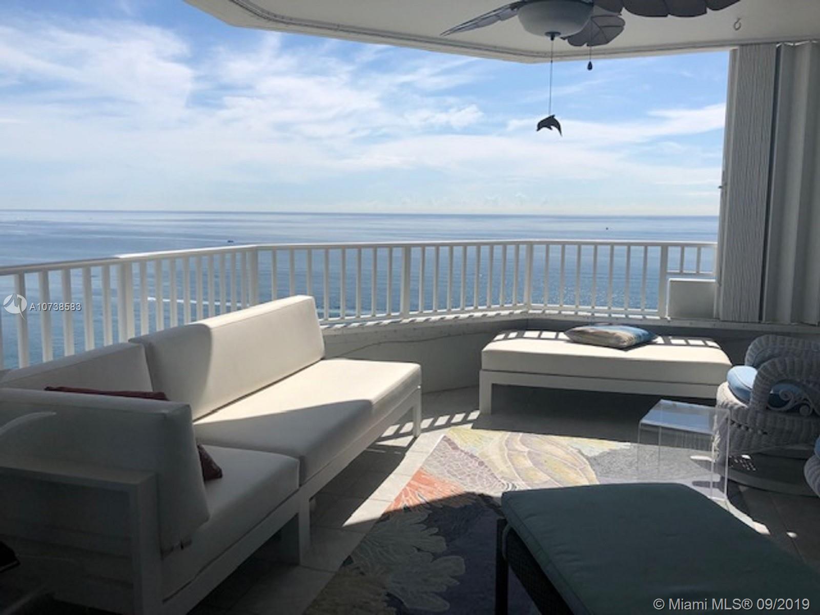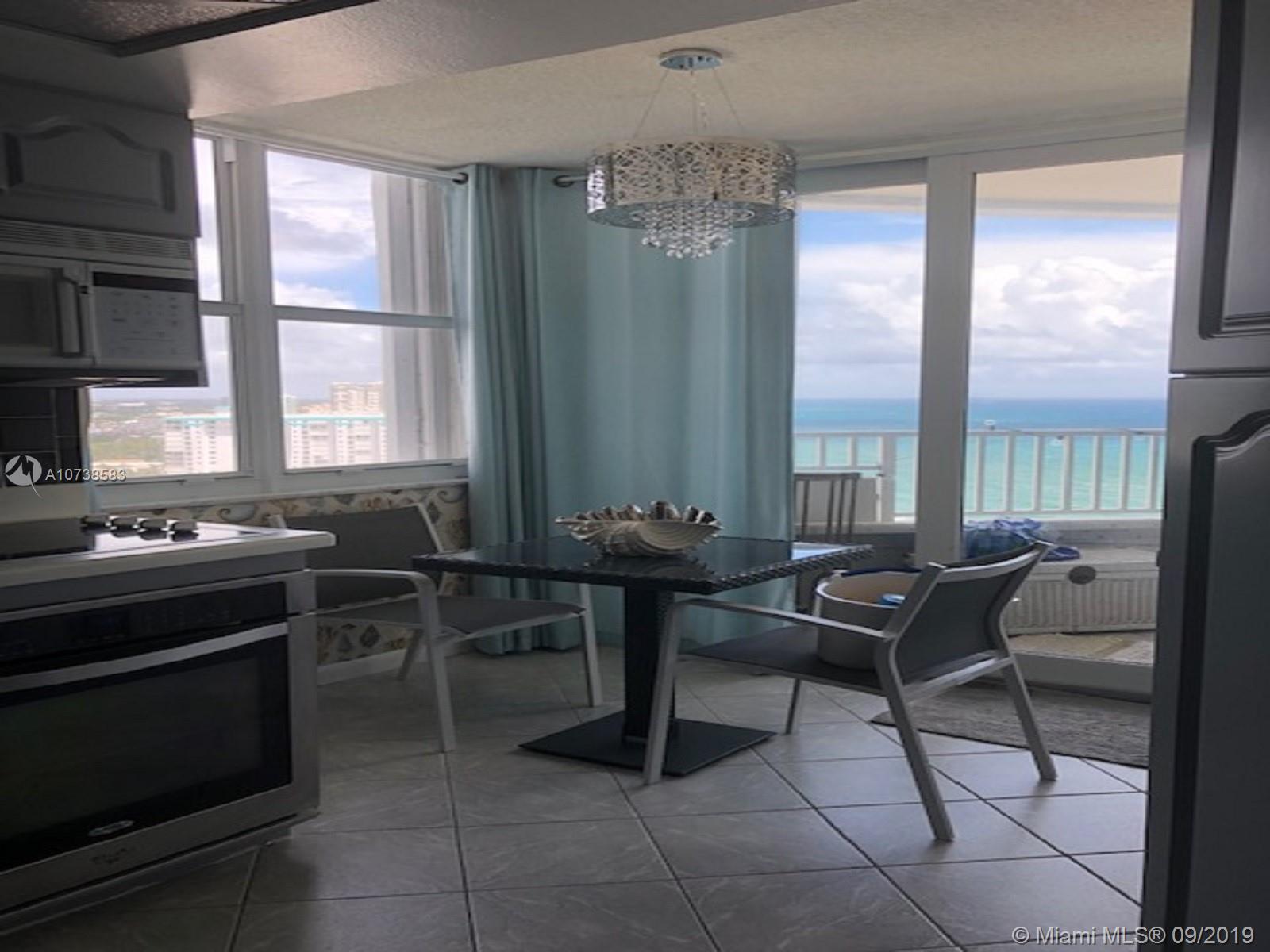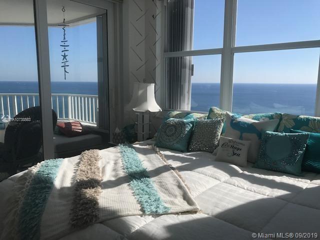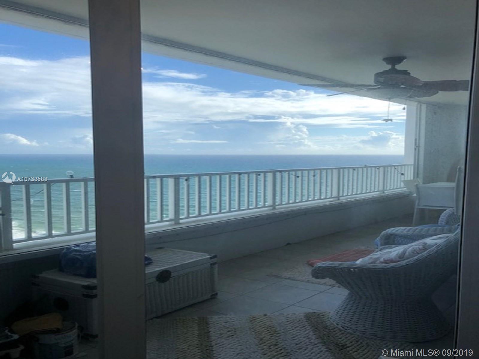 The moment you walk in, you will notice the breathtaking expansive direct ocean view and beach shoreline. From the extra large balcony, you can enjoy entertaining with views of the ocean, intra-coastal waterway and the city skyline. Two master bedrooms with walk-in closet in each and Master and Guest Bathrooms . All windows and doors are impact glass. Living Room and Guest Bedroom have floor to ceiling double opening doors that open onto the balcony. The unit is partially furnished with modern furniture and extensive mirrored walls in the Living and Dining Rooms. Air conditioner, water heater, roof were replaced in 2018. 1 assigned parking space in the garage near the elevator and ample guest parking. Pool, Bar-B-Cue Grills, Gym, Pool Table, Sauna and Community Room amenities.
