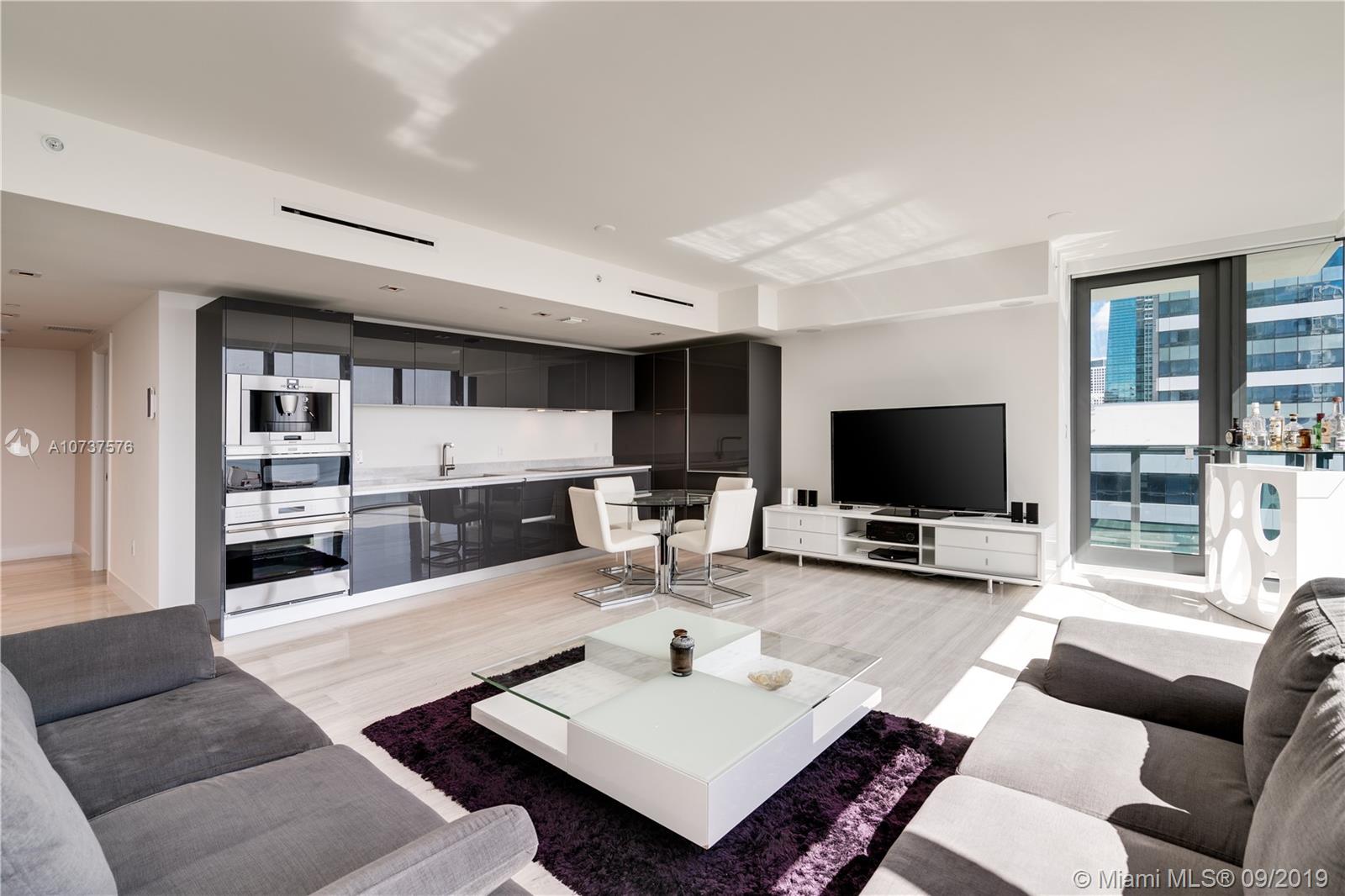 Welcome to this spectacular 2-bedroom, 2 ½ bathroom residence at the exclusive Echo Brickell. Enjoy the beautiful sunrise over Biscayne Bay from the spacious terrace that features a summer kitchen, ideal for entertaining. This corner unit is finished with exquisite marble floors, floor to ceiling windows, automated blinds, open kitchen with Italian cabinetry, Wolf, Bosch, and SubZero appliances. Master bedroom with walk-in closet, dual sink, marble shower, and separate bathtub in master bathroom. Designed with Smart iHome technology integrating audio, video, lighting system. Echo features infinity pool, 2 hot tubs with panoramic views of Biscayne Bay/Brickell/Downtown, poolside service, and health club. Valet parking, concierge, pet walker, chauffeur (up to 5 miles away).