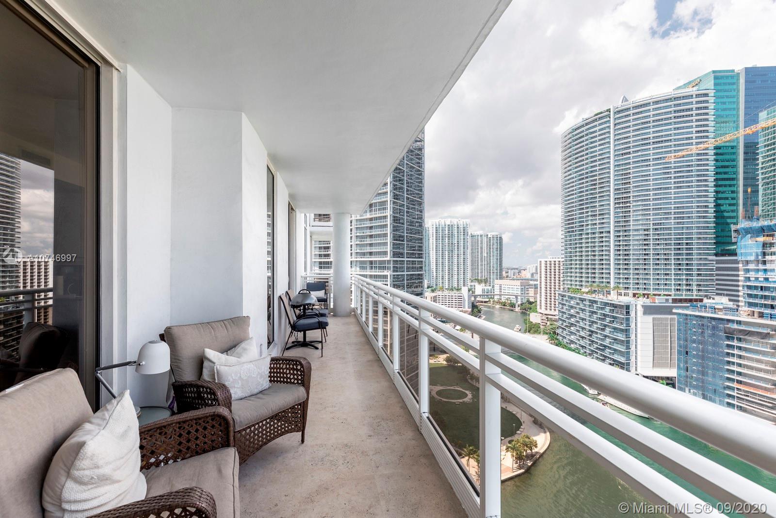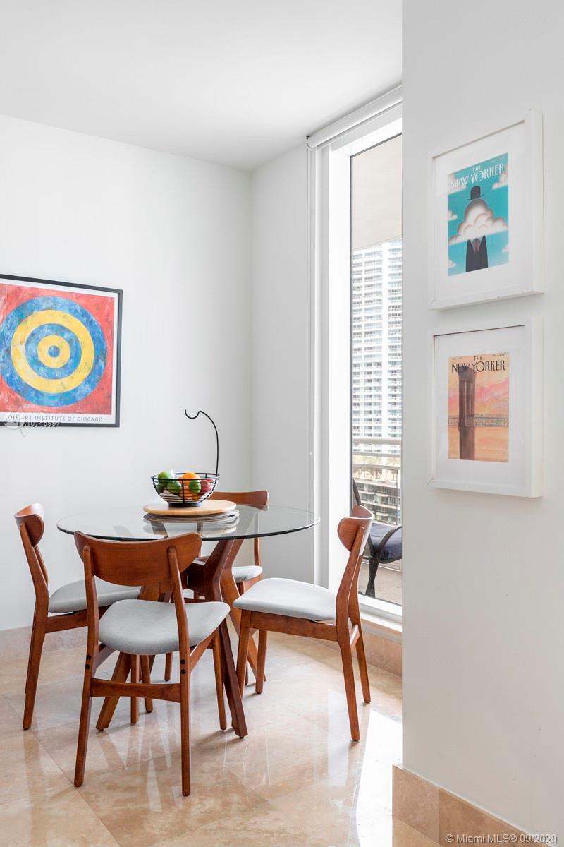 Panoramic views from this 24th floor recently renovated unit at Carbonell. Unit's features include marble floors throughout, 2 bedrooms, 2.5 bathrooms, eat-in kitchen, split plan, custom European style doors, high ceilings and 1,505 sq.ft. Spacious master bedroom with great views from its floor to ceiling windows, master bathroom has separate shower and tub, double sinks. Price revised for a quick sale!