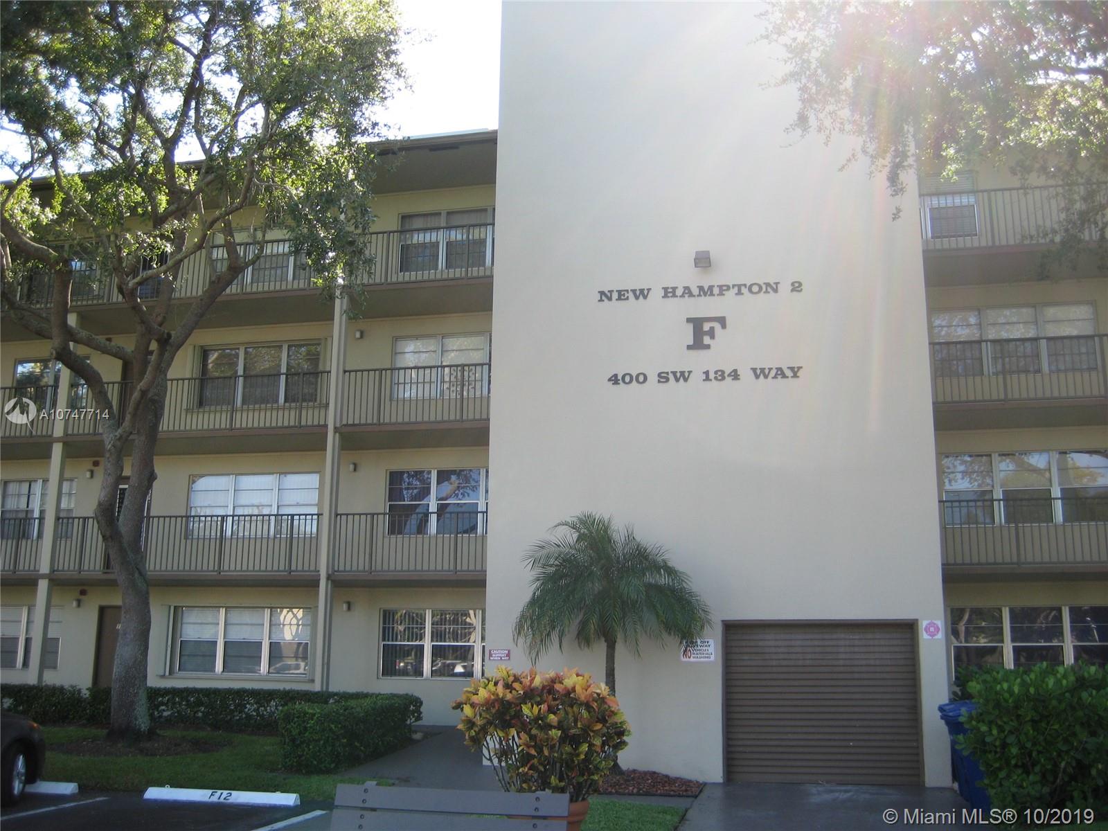 Well kept 1 bedroom 1.5 bath condo in New Hampton II Bldg F. with a Golf Course and Lake views. Screen balcony, Laminated floor throughout, ceramic tiles in both bathrooms. Laundry facility on each floor of the building. This community offers a courtesy shuttle, security patrol, oversized pool, clubhouse, close to shopping centers, and majors expressways.