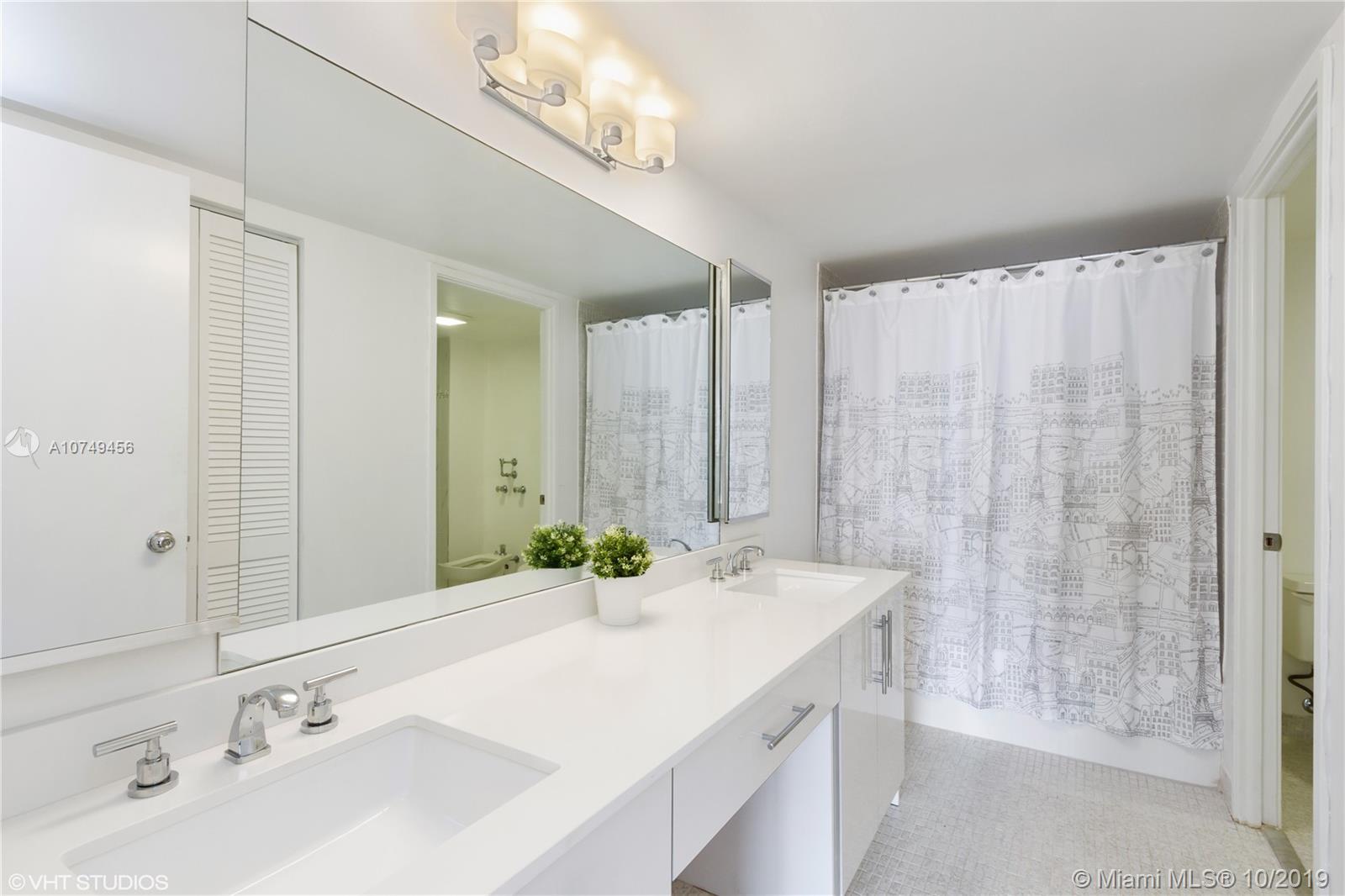 Amazing Panoramic Intracoastal, Bay & Skyline Views! Beautiful corner unit w/ a great floor plan. 2,267 sq ft w/balcony. 3 large bedrooms, 2 master bathrooms, updated guest bathroom. Remodeled master bathroom w/ walk-in shower, bathtub, bidet, vanity area & walk-in closet. New blinds in 2 bedrooms. Huge balcony w/ floor to ceiling sliding glass doors - living room & master bedroom. Totally renovated new kitchen: new appliances, white wood cabinets, deep double stainless sink, quartz counter tops, raised ceiling, inset lighting. New washer & dryer. New light fixtures - dining room, foyer. Hurricane Shutters. 2 Deeded covered parking spaces. Intracoastal building w/great amenities: 24 hour front desk security, full gym w/men & women lockers, sauna & steam room, pool, tennis courts.