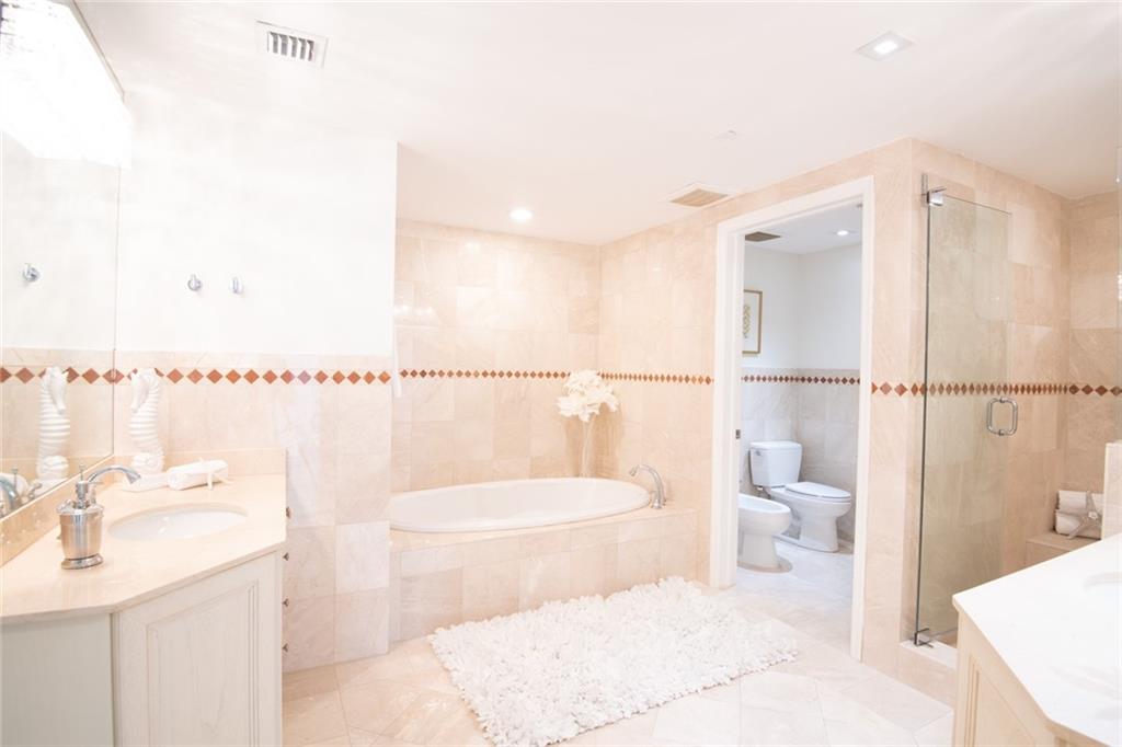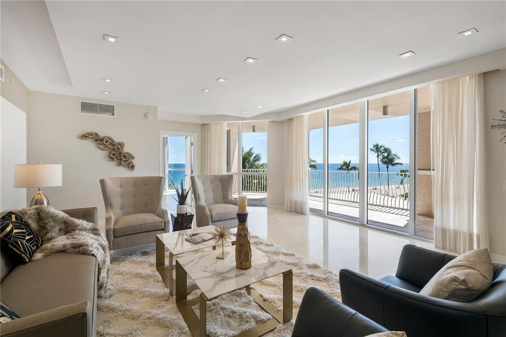 Luxury and Refinement overlook nothing but the Ocean in this spacious 3500 sf condo that feels like a 'house' on the beach. Exit the elevator and into your private foyer. The reflective mirrored Formal Dining Room and unique built-ins will have your guests in awe from the moment they enter. LED & Contemporary Lighting Fixtures, polished marble floors, 9' floor to ceiling impact windows & doors, 3 living areas, 3 bedrooms all ensuite. Gourmet Kitchen w/Miele & Sub-Zero appliances opens to the Family Room. A separate den/office area can also serve as an entertainment room or 4th bedroom. The elegant Master Bedroom & Living Room provide Direct views of the Ocean. Two expansive balconies, 2 Parking spaces and Storage. Fabulous Fitness Center and Community Rooms. Pool, BBQ area, and 2 dog runs.