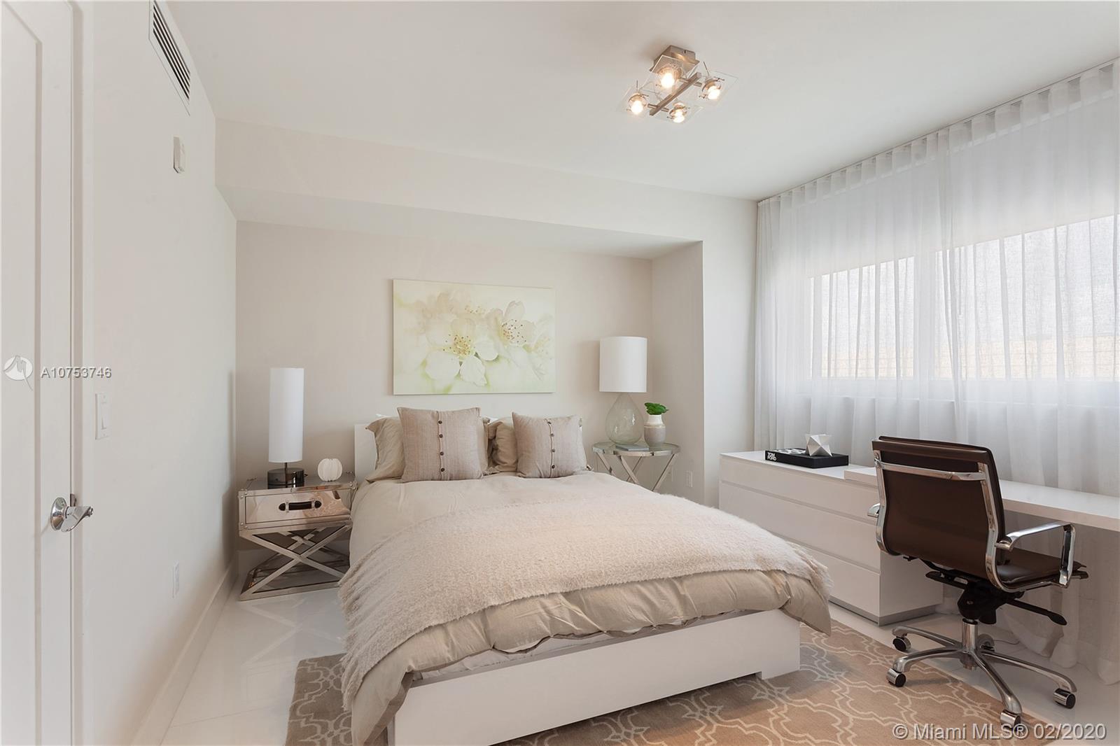 Amazing Deal! Waterfront Corner Unit in Bay Harbor. 3 beds 3 and half baths. Fully finished with white porcelain floors throughout. Window treatments (blackouts and sheer curtains) Bosh appliances. Large terrace with beautiful views of water & Indian Creek golf course. Fully decorated by ARTEFACTO. Boutique Building with private elevator, private storage and 2 parking spaces. TURN KEY Furnished! A must see Unit. Priced to sell!