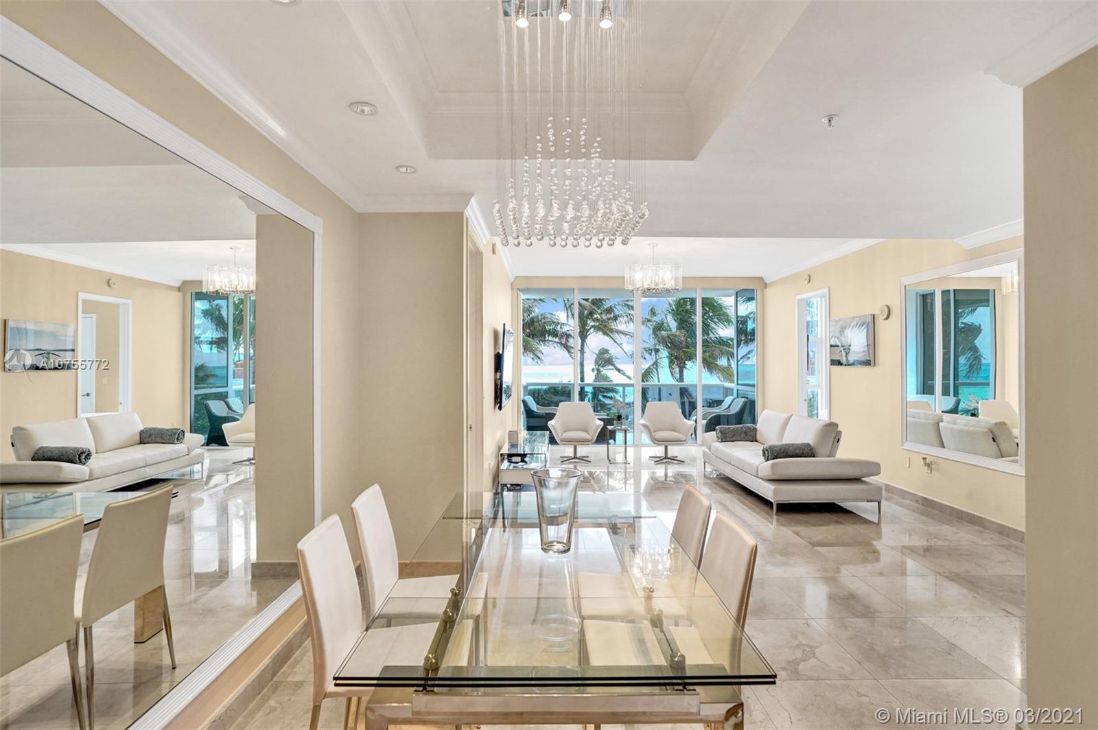 LUXURIOUS 2 BED/2.5 BATH RESIDENCE IN TRUMP PALACE OFFERS DIRECT OCEAN AND POOL VIEWS. EUROPEAN FULLY EQUIPPED KITCHEN WITH GRANITE COUNTERTOPS, STAINLESS STEEL APPLIANCES, MARBLE FLOORS, WINDOW TREATMENTS, CUSTOM CLOSETS, JACUZZI. EXCLUSIVE OCEAN FRONT PROPERTY WITH MANY POOLS, SPA, FITNESS CENTER, BUSINESS CENTER, BEACH, ROOM SERVICE, CONCIERGE, 5 STAR AMENITIES, 24HR VALET & MORE.