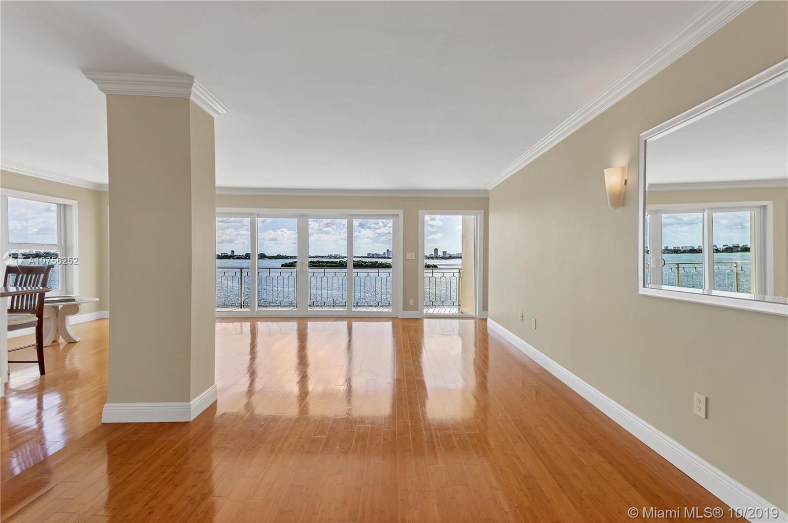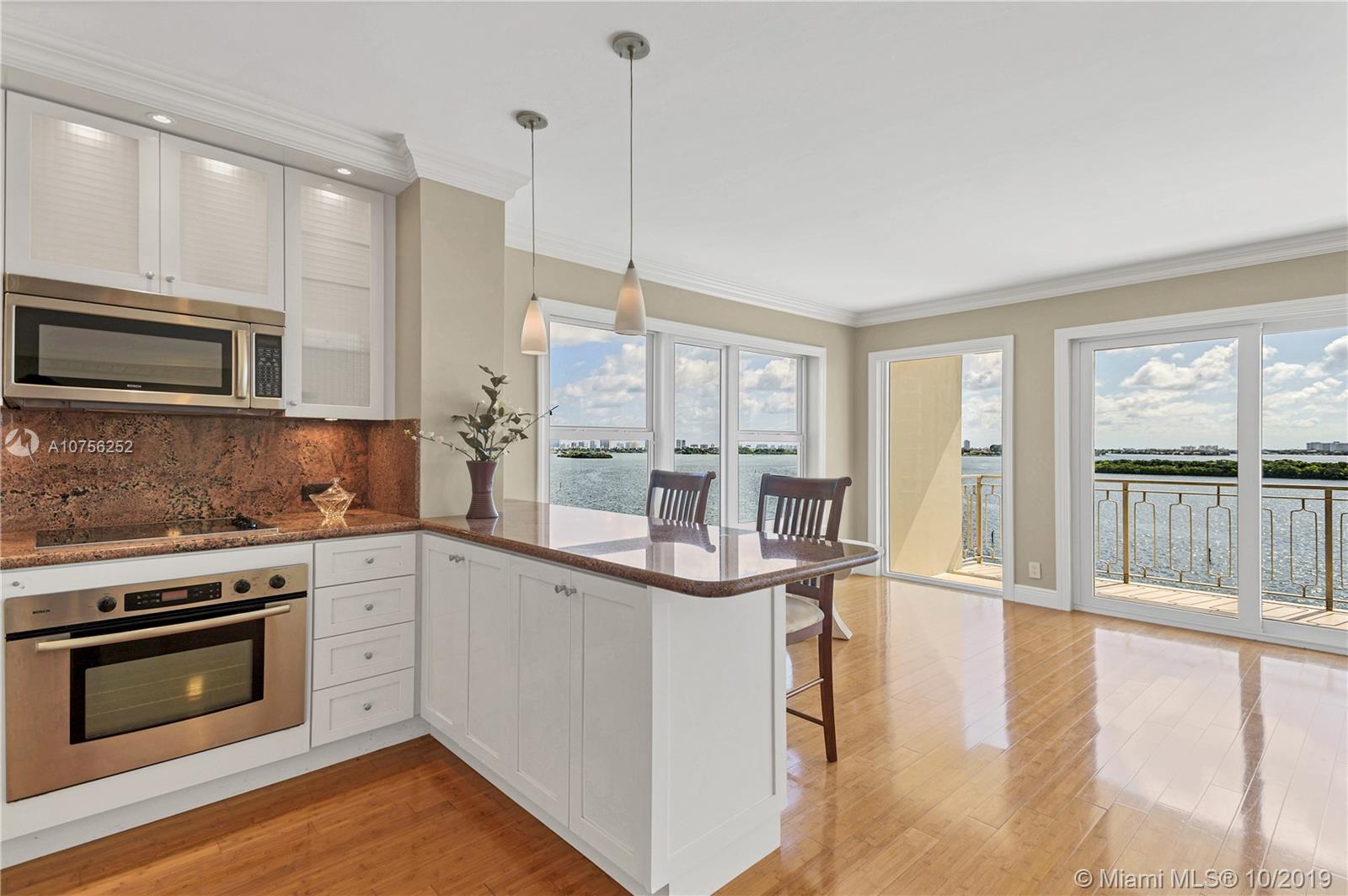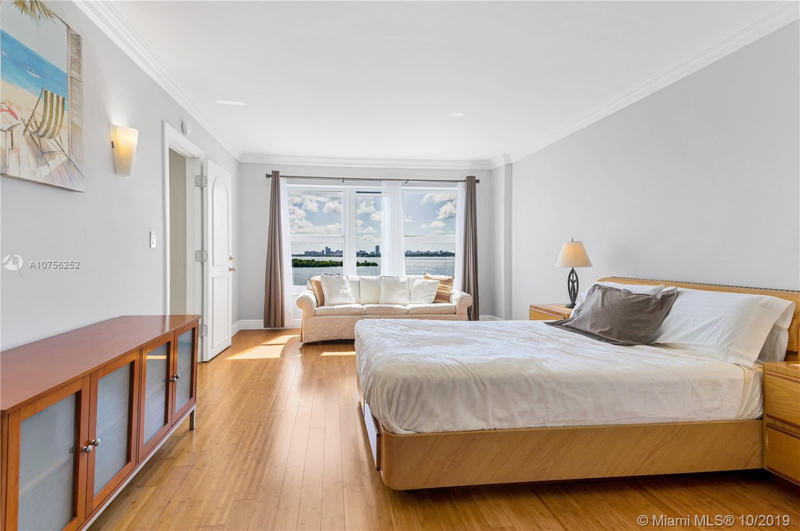 Breathtaking bay views! Best line in the building, flooded with natural light. Stunning renovated corner unit with HIGH IMPACT WINDOWS! Split plan with 2 master suites, large walk in closet and private entrance to the second bedroom. Crown moldings and bamboo flooring throughout. Spacious balcony overlooking endlessly into the bay and the Miami and Miami Beach skyline. Amenities include a swimming pool, children playground, 24/7 security and complimentary valet parking, membership to Miami Shores Country Club and US1 Fitness. Gated community sited on 23 Acres, minutes away from Bal Harbor Shops and Aventura Mall and excellent dining possibilities.