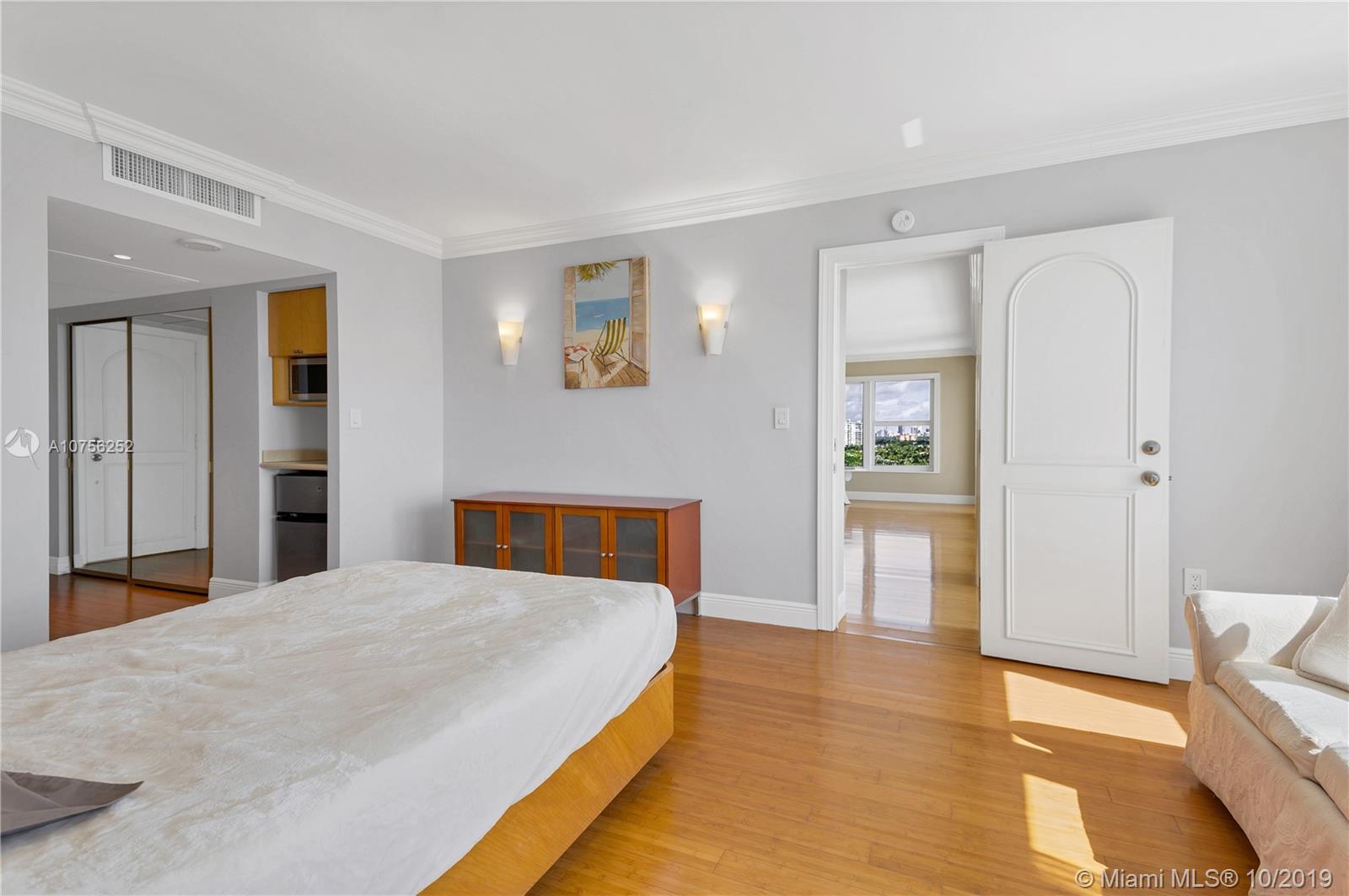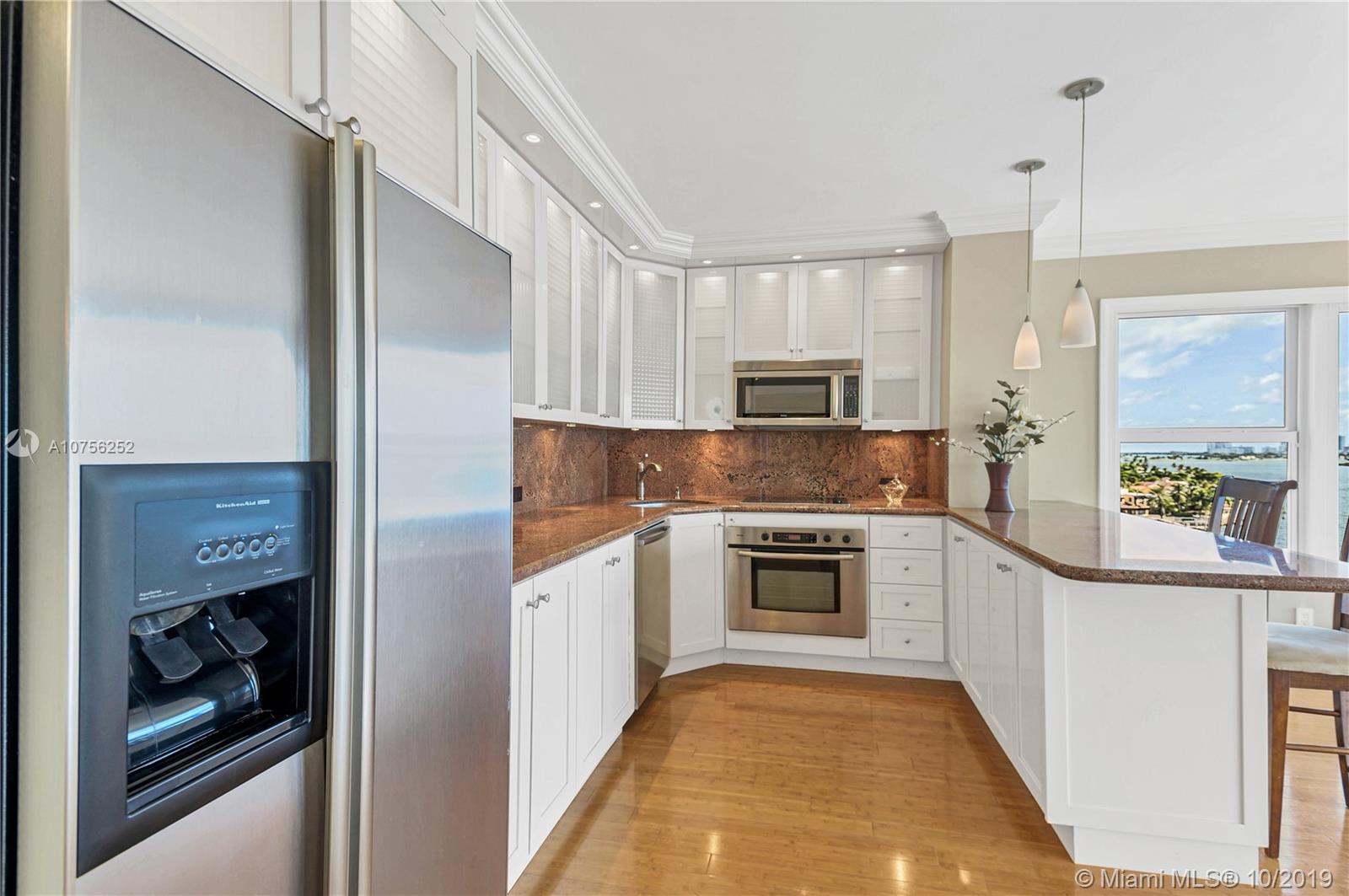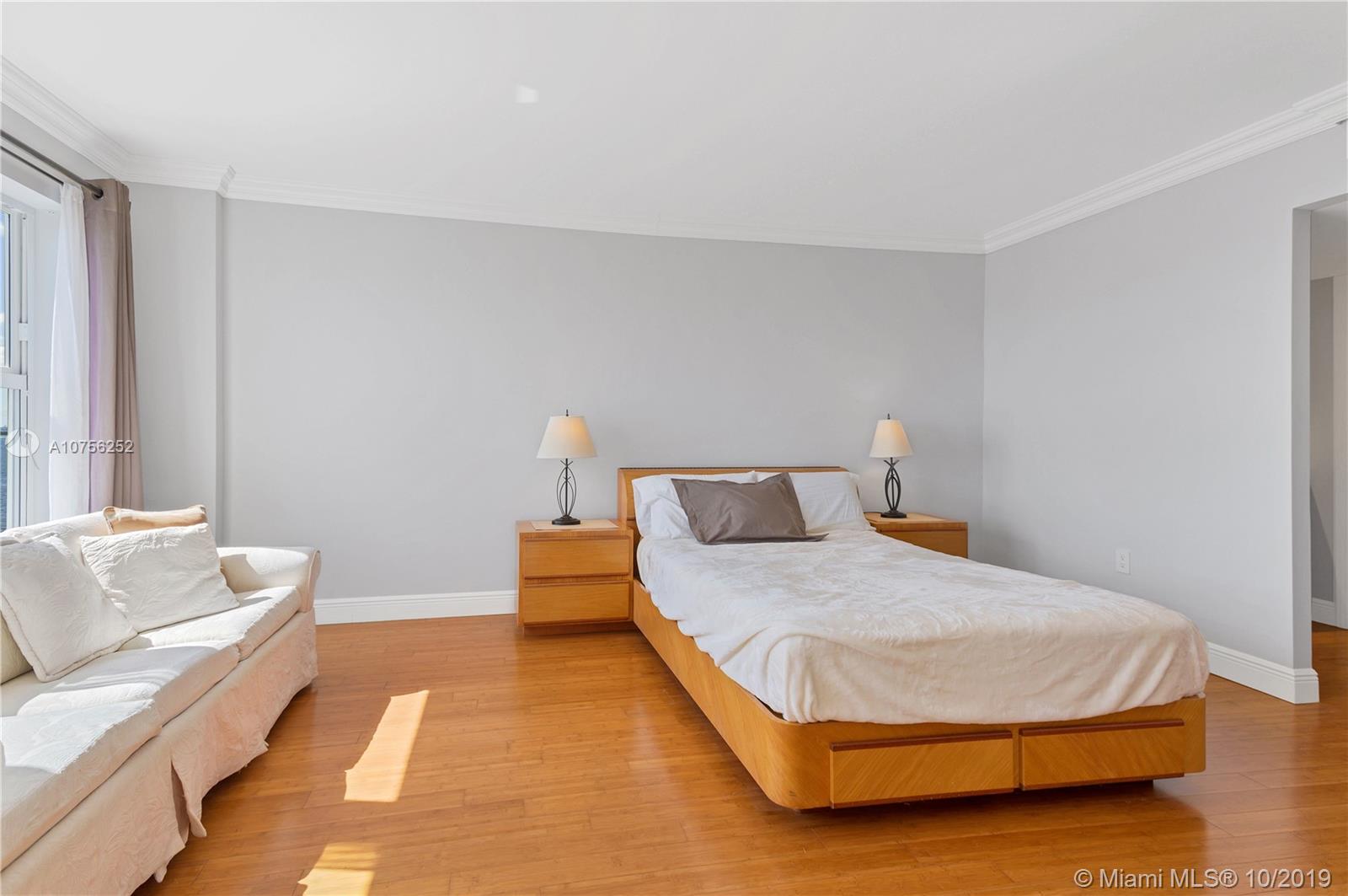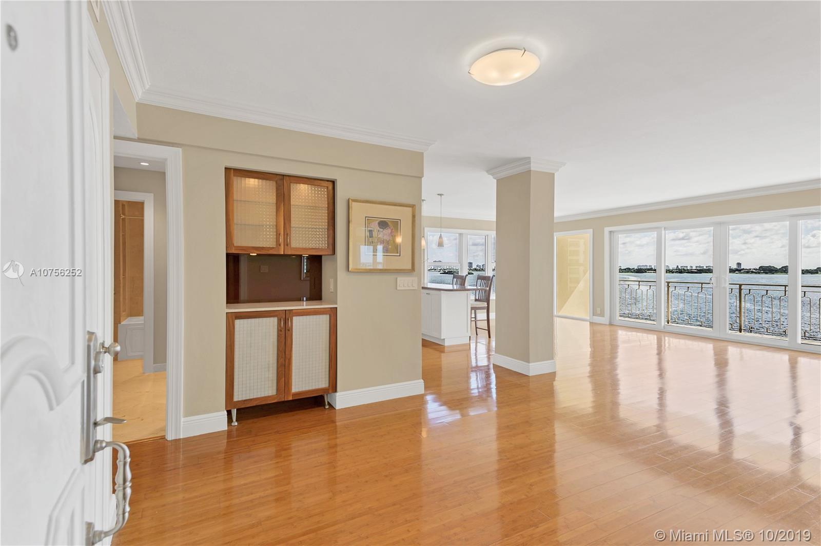 Breathtaking bay views! Best line in the building, flooded with natural light. Stunning renovated corner unit with HIGH IMPACT WINDOWS! Split plan with 2 master suites, large walk in closet and private entrance to the second bedroom. Crown moldings and bamboo flooring throughout. Spacious balcony overlooking endlessly into the bay and the Miami and Miami Beach skyline. Amenities include a swimming pool, children playground, 24/7 security and complimentary valet parking, membership to Miami Shores Country Club and US1 Fitness. Gated community sited on 23 Acres, minutes away from Bal Harbor Shops and Aventura Mall and excellent dining possibilities.