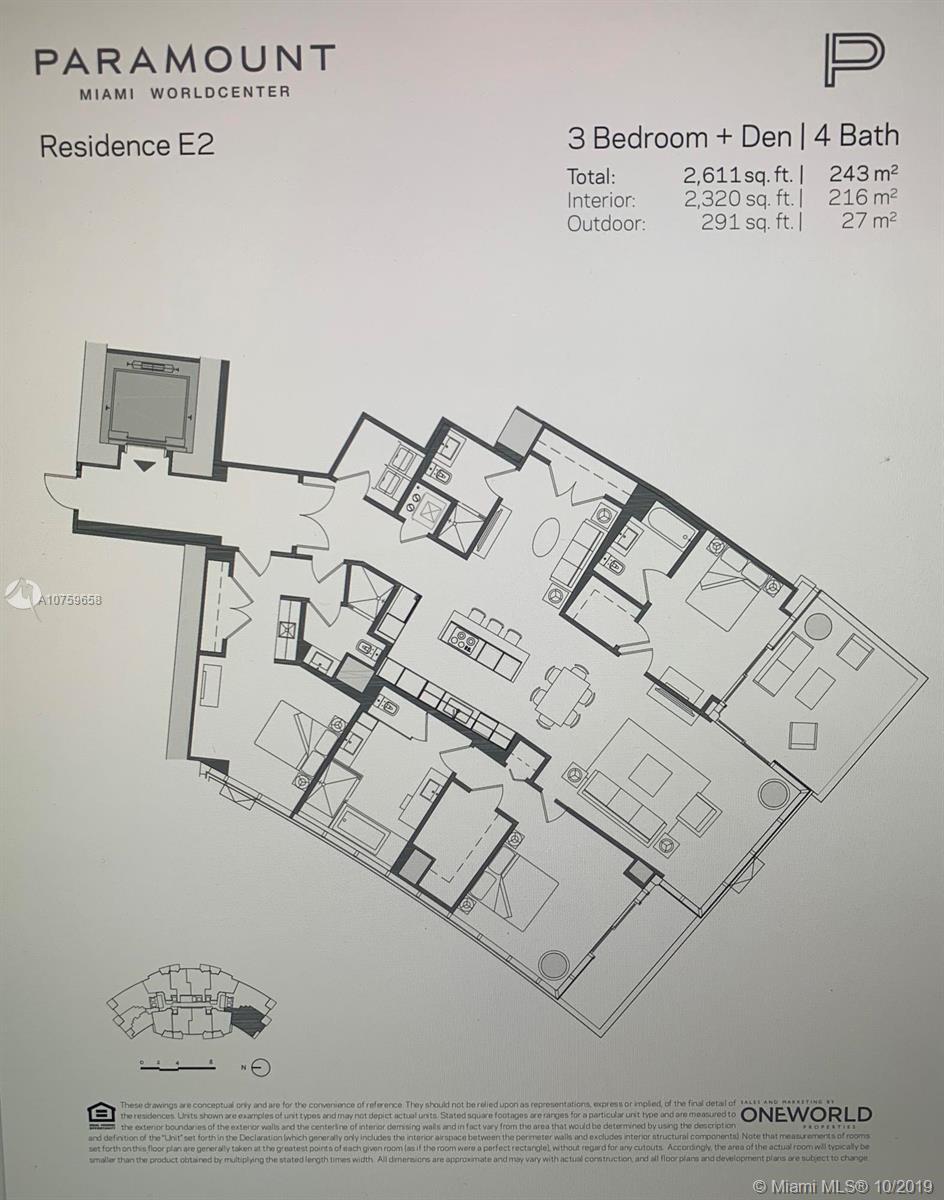 Fabulous Miami World Center 3 Bed/4 Bath + Den+ 3rd Bed Lock-out studio with 1 Bath and small kitchenette, 10 Ft ceilings 2,320 sqt + 291 sqf balcony, private foyer. Beautiful Bay, City and Ocean views. Designer European Kitchen with Bosh Appliances , Private Elevator, Beautiful East Views. The building has the MOST Incredible Amenities in Miami including: Concierge Service, Basketball, Soccer, Tennis, Multiple pools, Business Center, Game Room, Boxing, Yoga Studio, Observatory, Gym, Skydeck and Restaurants. One of the best locations in the heart of Miami steps away from the best dining, shopping & nightlife, Bayside, American Airlines Arena, Adrienne Arsht Center, Perez Art Museum and the Miami districts.