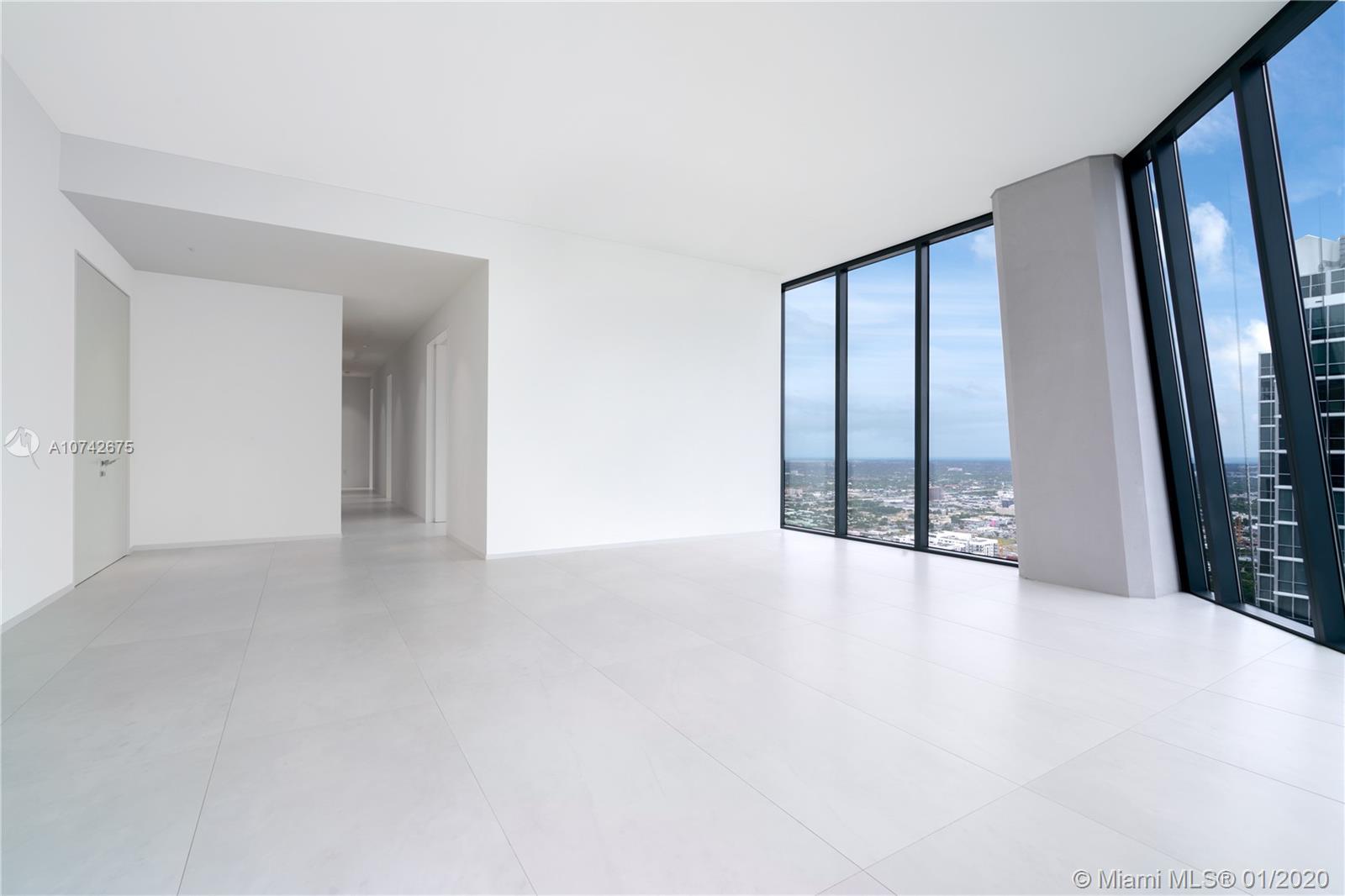 A true mansion in the sky atop One Thousand Museum, a triumphant expression of great design by legendary architect Zaha Hadid. This full-floor, 9,910 sq. ft. penthouse has impressively proportioned spaces, highlighted by 12 foot ceilings, and the 86x26 foot great room. Terraces offer arguably the most spectacular views in Miami, combining bay, city, ocean, and endless blue sky. Attention to architectural detail is meticulous. Every interior door has custom-designed handles by Ms. Hadid, and the unique engineering created sweeping interior spaces. Extraordinary amenities offer a bespoke lifestyle tailored to each resident, from the five-star spa with customized personal training to the indoor and outdoor pools, the private lounge offering aperitifs, and of course the rooftop helipad.