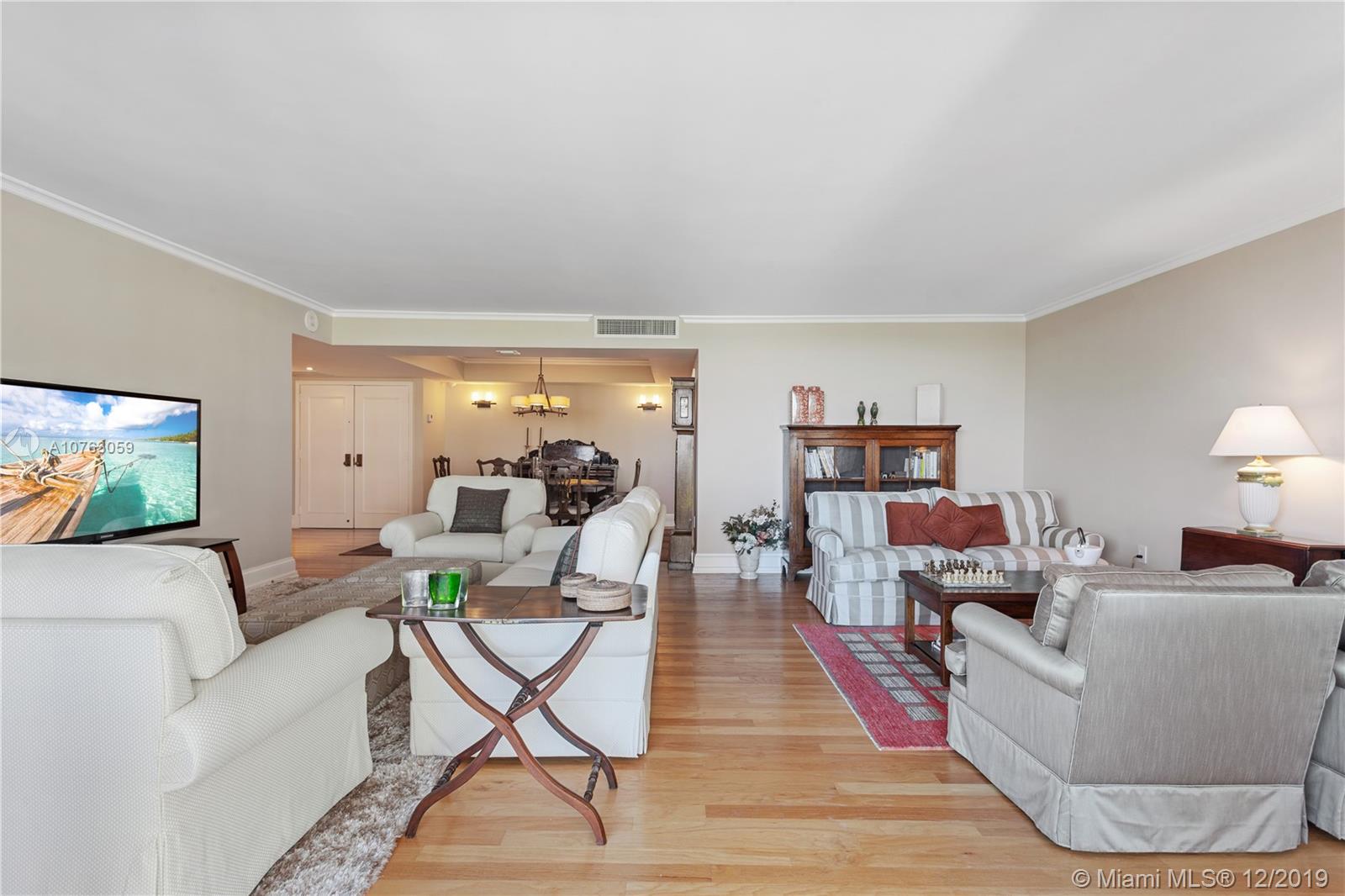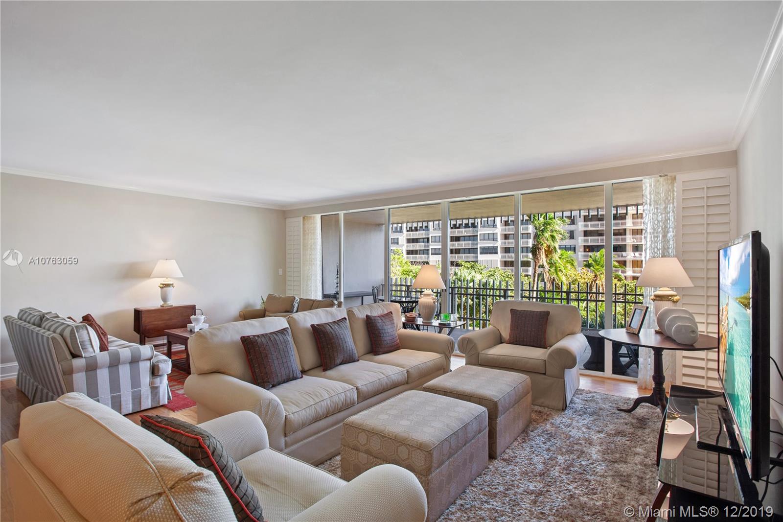 Beautiful large 2 bedroom, 2 bathroom with 1,882 SF of living space in building 1. There’s no work to be done, move right in! This residence has been tastefully renovated with wood floors, beautiful bathrooms, kitchen with custom cabinetry, updated appliances, Corian countertops and mosaic tile backsplash. Other features include crown moldings, 7 ½ inch floor boards, customized closets, interior solid wood doors, lighting throughout, plantation shutters in living room, laundry closet with built-in cabinets and washer/dryer. Master bathroom has double sinks, shower and a built-in vanity. Enjoy lush tropical island and East bay views and relaxing fountain right from your terrace all year round. Live in the perfect location at Grove Isle a 20-acre guard-gated island in the North Grove.