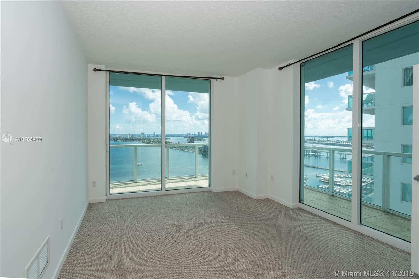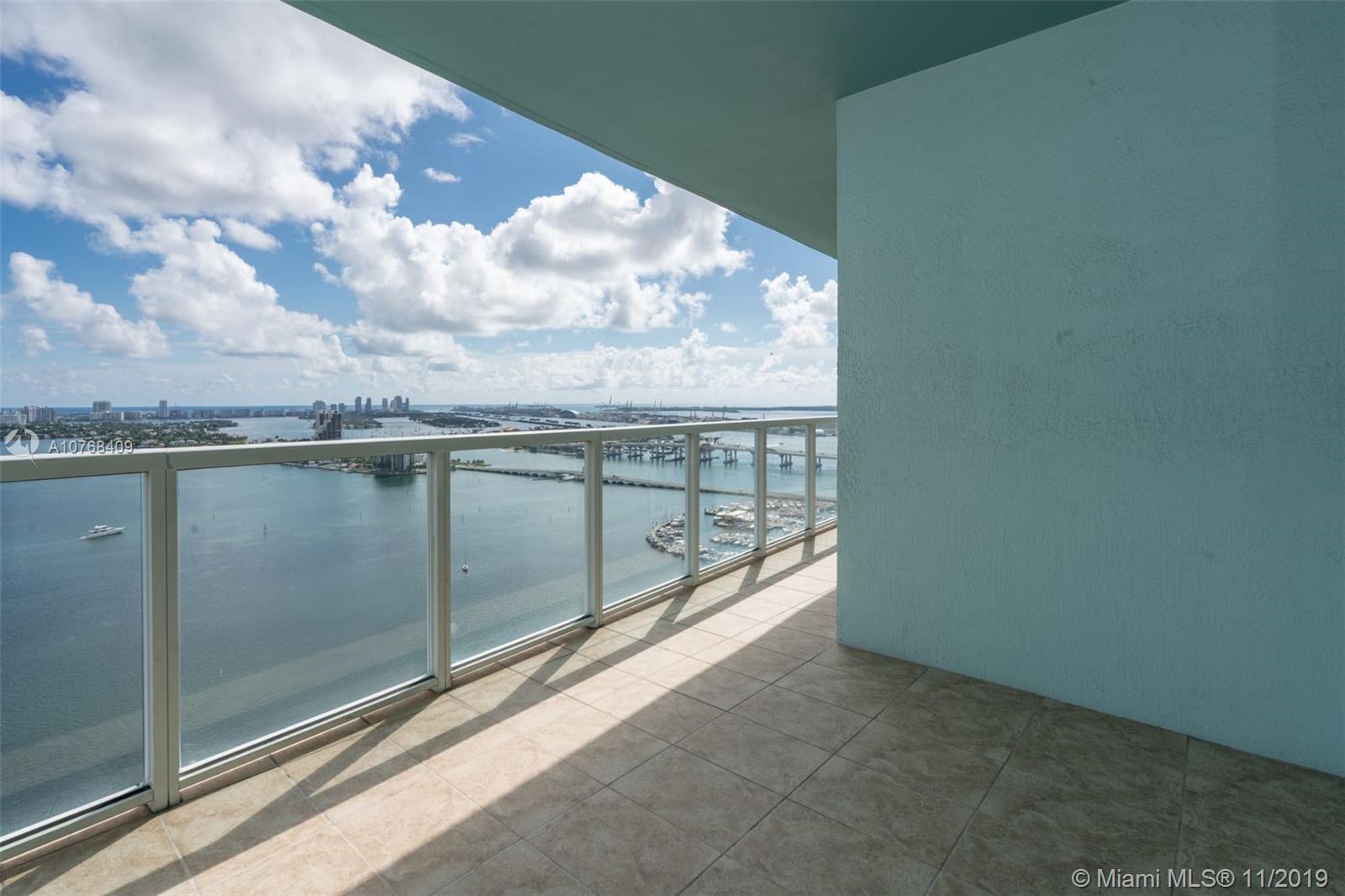 Spectacular 2/2/5 + Den with a direct breathtaking water views. Best line in the building with wrap around terrace and a split bedroom floor plan. Custom Built Walk-in-Closets and updated flooring. 2 parking spaces included. Amenities include 2 pools, 2 story gym, sauna, beautiful lounge area and much more... Close to downtown Miami, Midtown, Wynwood, Design District and South Beach. Easy commute to airport.