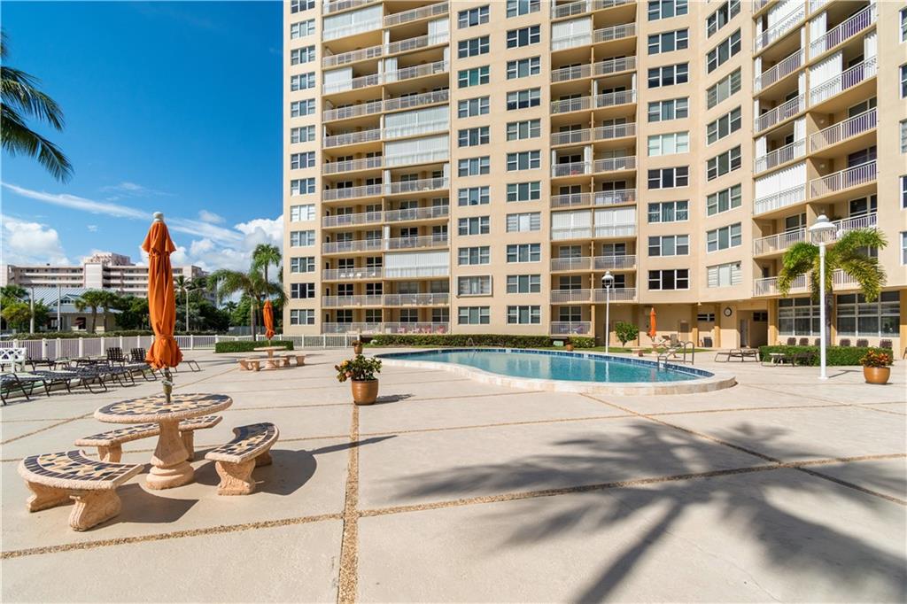 Direct Ocean views from this high floor, southeast corner condo across from the ocean. This condo has many windows offering a lot of natural light and gorgeous views to the east, south and north A large balcony boasting ocean and Intracoastal views with sunrises and sunsets! This condo has been renovated and features hurricane impact windows, quartz counter tops in kitchen. double stainless steel sinks, updated bathrooms, upgraded electrical panel, 2ton air conditioning, covered parking and more! Just steps from building to the new beachside Pier development with restaurants and shops and the beach.