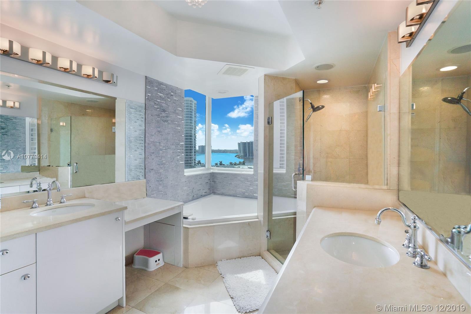 1,825 sq ft of modern elegance! Over $150,000 in professional design, renovation and best in class finishes including museum quality stainless steel recessed floating-wall baseboards, widened hallways, opened kitchen, custom LED lighting, solid wood seamless/flush studio doors valued at $2,000 each, Hunter Douglas blinds, Italian luxury porcelain flooring and marble, Italian closets and more. The Parc at Turnberry Isles condo, built in 2005, only has 122 units making it an incredibly exclusive, boutique & private living experience.The ocean, yacht marinas, houses of worship & the famous Turnberry golf club just minutes away.Gym, massage rooms, kids playground, and even a weekend elevator that stops on every floor. Very secure building with two gates. Building allows 2 pets under 35 pounds.