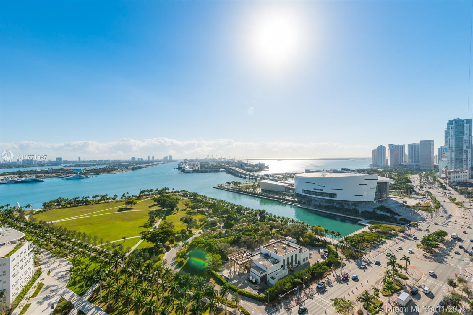 Modern living at its best in the cultural center of the city! This 1,802 sq.ft. 2/2.5 sky loft w/ 20' walls of glass offers stunning views of Museum Park, Biscayne Bay, South Beach and the Miami skyline. This loft is finished to perfection with porcelain flooring throughout, fully S/S kitchen w/ Miele, Sub Zero and Bosch appliances. This home includes such upgrades as motorized solar shades, full-sized Miele washer & dryer and an amazing kitchen island. Included with this unit is air-conditioned storage and two parking spaces. TMP is a full-service building with 24-hour concierge, the Clinique La Prairie Spa, full gym and cardio room, five swimming pools, security and all of the amenities of a true luxury high-rise in Miami.