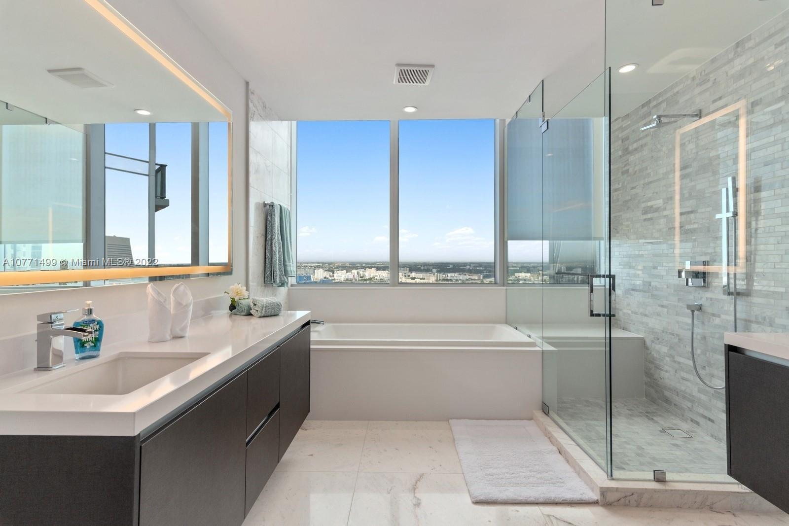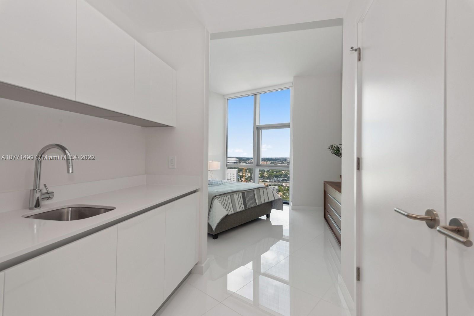 Indulge your senses in this 3 bed + den at Paramount Miami Worldcenter boasting the "Most Amenities in the World"! Over 2,600 sqft of generous interior living, 290 sqft of outdoor living & private foyer entrance. Unique "lock out" room perfect for Nanny's or Guests equipped with a kitchenette & private door to the foyer & elevator. PMWC features virtual golf,5 resort-style pools, jogging path, yoga & recording studios,basketball court, gym w/ boxing area, BBQ kitchen, racquetball, kids area & more to come soon- a soccer field,tennis courts,skydeck & observatory w/ telescopes, Spa+treatment rooms, hair/nail bar. Steps from Metro Mover, Virgin Train Station,Port of Miami,AA Arena & future home to Miami Worldcenter! Minutes to MIA Airport,Brickell,Wynwood & Miami Beach.WiFi & Cable included.