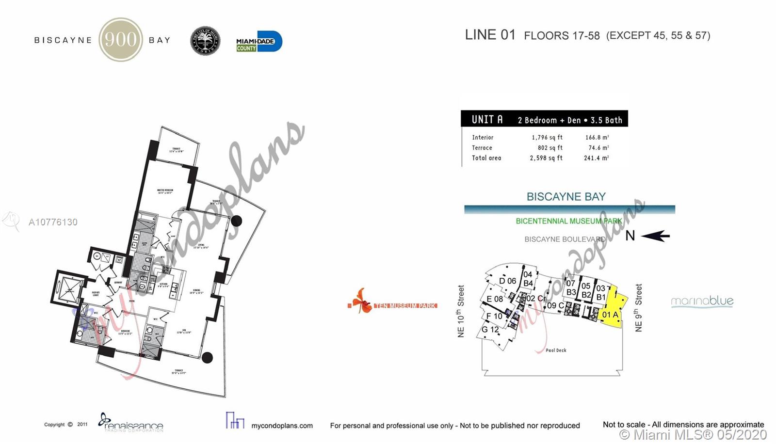 GREAT OPPORTUNITY! Amazing 3/3/1 unit!!! The best line in the building with a flow-thru floor plan featuring a 180-degree breathtaking view. This unit has over $ 200 K in the custom upgrade, making the most beautiful and desirable unit at 900 BISCAYNE BAY CONDO! Top of the line Sub-zero appliances, white marble porcelain floors, custom lighting, remote-controlled electric blinds, custom mirror kitchen cabinets, built-in cabinet bars in the living room, glass wall in the master bathroom with an incredible bay view, surround sound system, mirror balconies, and many other upgrades. The unit is a 3/3 + guest bathroom, but the third bedroom is open (den), it's been used as a dining room. A total of 1,796sqft of A/C and a huge 802sqft balcony.