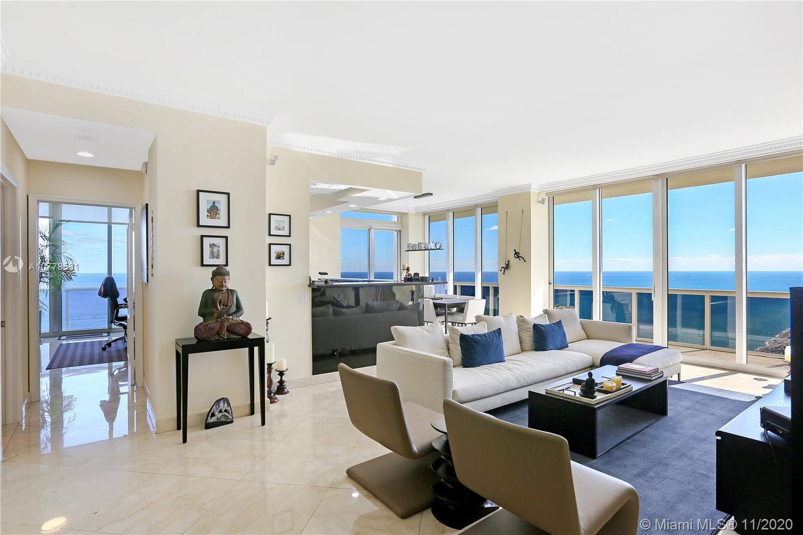 Great opportunity to own a stunning 43rd floor Penthouse at the Green diamond! This 3 bed/3 bath apartment features spectacular unobstructed southeast views of the ocean, city and bay, ocean views from every room, a spacious 1,940 square foot floor plan with marble floors throughout, extra high ceilings, marble bathrooms, open kitchen w/ocean view, floor-to-ceiling windows and extra large balcony wrapping around the entire length of apt accessible from every room. 1st class amenities: 24hr security, valet, concierge, tennis, pool & towel service, cafe/market w/room service, a 16,000sf oceanside clubhouse/spa, gym, personal trainers, free workout classes, steam/ saunas, hot tubs, card & party rooms, nursery, playroom, billiards, business center, beach attendant, and more!