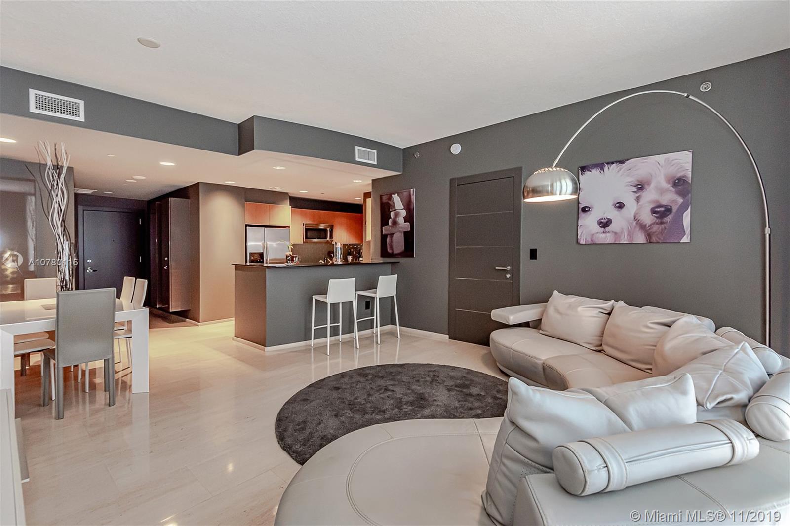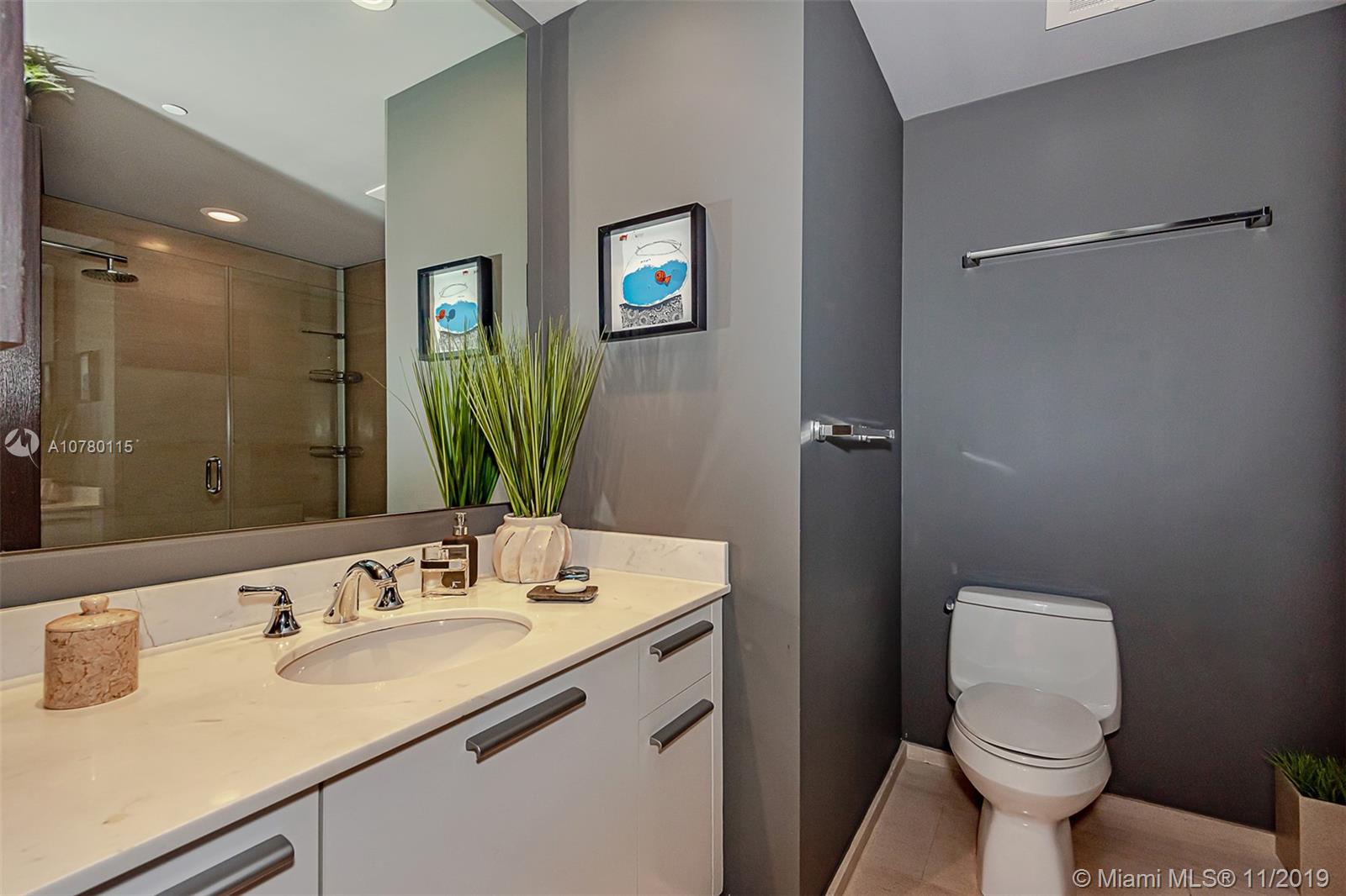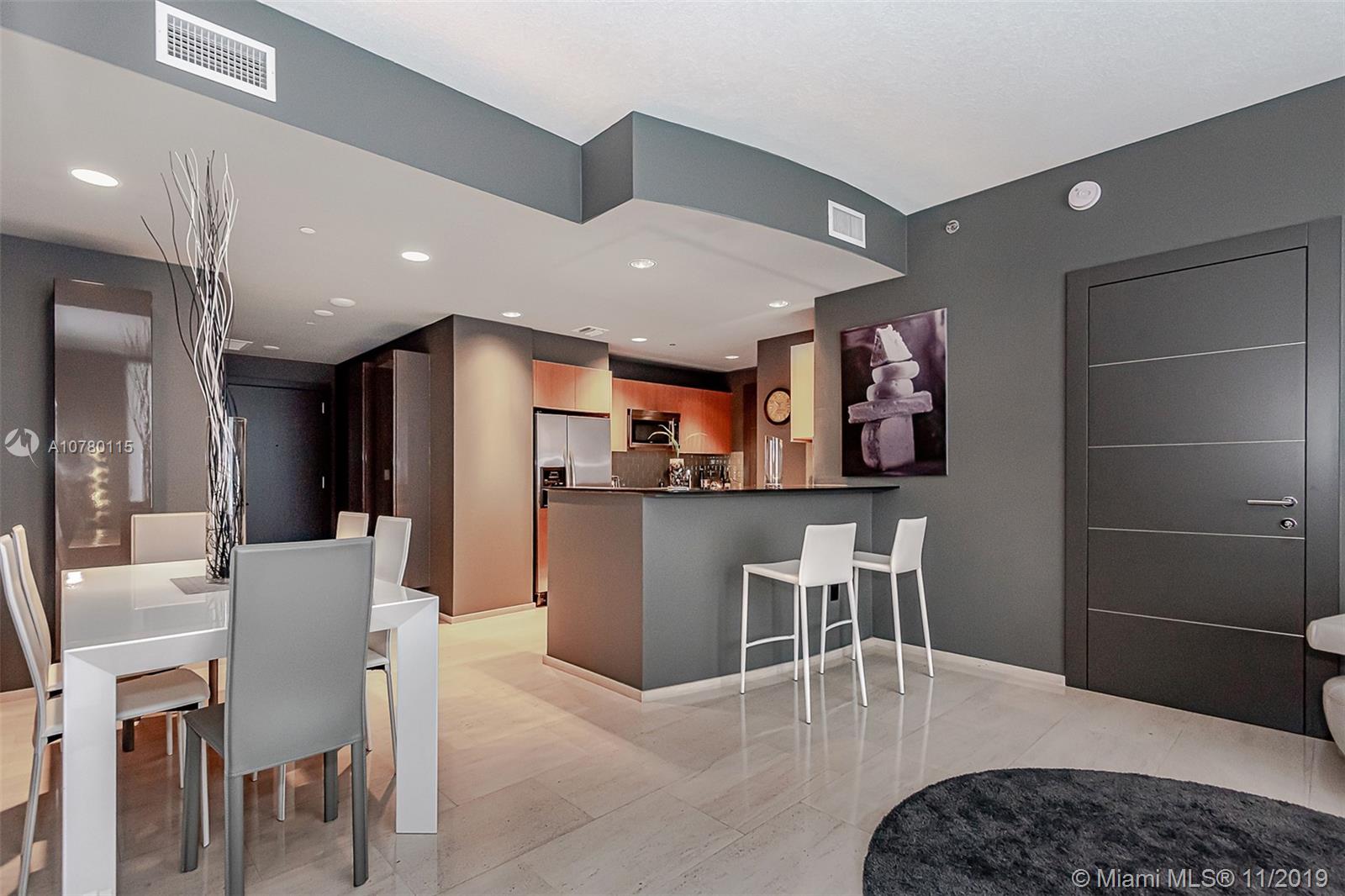 Location, Location,Location on this fantastic remodeled 1 bedroom with bath and a half , italian designer furniture , Lualdi italian magnetic doors, quartz counter tops , lots of closet space (built ins) remote electric shades ,enjoy fantastic water and urban views from private balcony, shopping and entertainment close by like Brickell City Center, Marry Brickell , Restaurants, Bars,Cafes. Building offers infinity edge pool , state of the art gym, virtual golf, covered assigned parking .