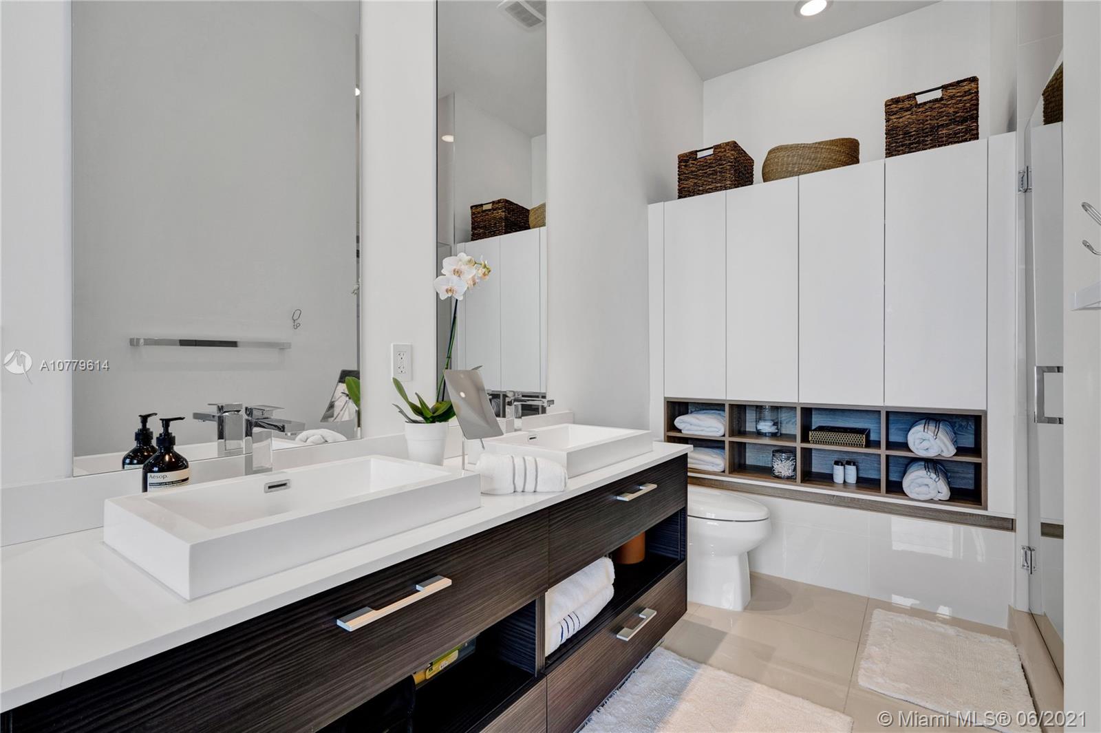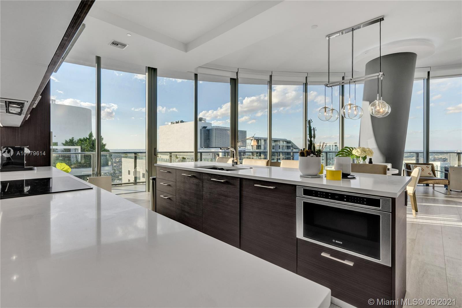 Sophisticated Penthouse Residence in Brickell Heights East! Captivating views from the wrap-around terrace over Miami Skyline and Biscayne Bay from sunrise to sunset. This 3/3.5 corner residence features luxurious updates with custom cabinetry, suspended ceiling light fixtures, upgraded kitchen cabinetry & appliances. Floor-to-ceiling windows create a spacious contemporary ambiance, tastefully furnished and furniture is negotiable.Brickell Heights amenities include Equinox Gym & Spa, Rooftop Sky Pool Deck, Business Center and 24/7 Concierge. Only 3 neighboring penthouse apartments. A very private residence above the vibrant Brickell area. For full 3D Tour, please see broker remarks.