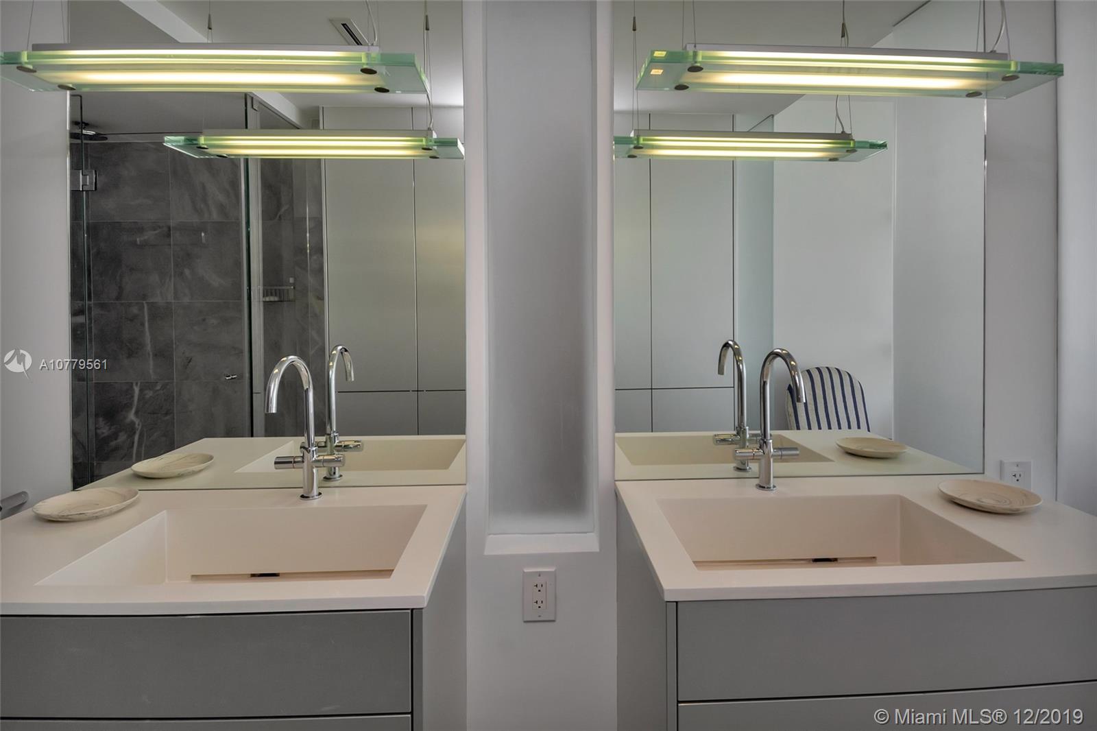This corner apartment has the Wow Factor with water views from every window in this no-expense-spared designer renovation. Spectacular gray Italian marble floors, Bulthaup stainless/aluminum cabinets in bath & kitchen, Wolf induction stove, Miele oven & integrated dishwasher drawer & fridge. Custom lighting throughout, pocket doors, impact windows, California Closets, Victorian soaking tub. 2nd bedroom has been opened to create large den; easy to return 2nd BR. Common areas recently renovated; assessment paid in full. New gym coming soon. Full service building with heated pool, jacuzzi, bbq, tennis, 24 hour doorman, valet parking for guests. Kayak/paddleboard storage & launch. Internet, cable TV, a/c included in maintenance; one assigned parking space. Must see to appreciate!