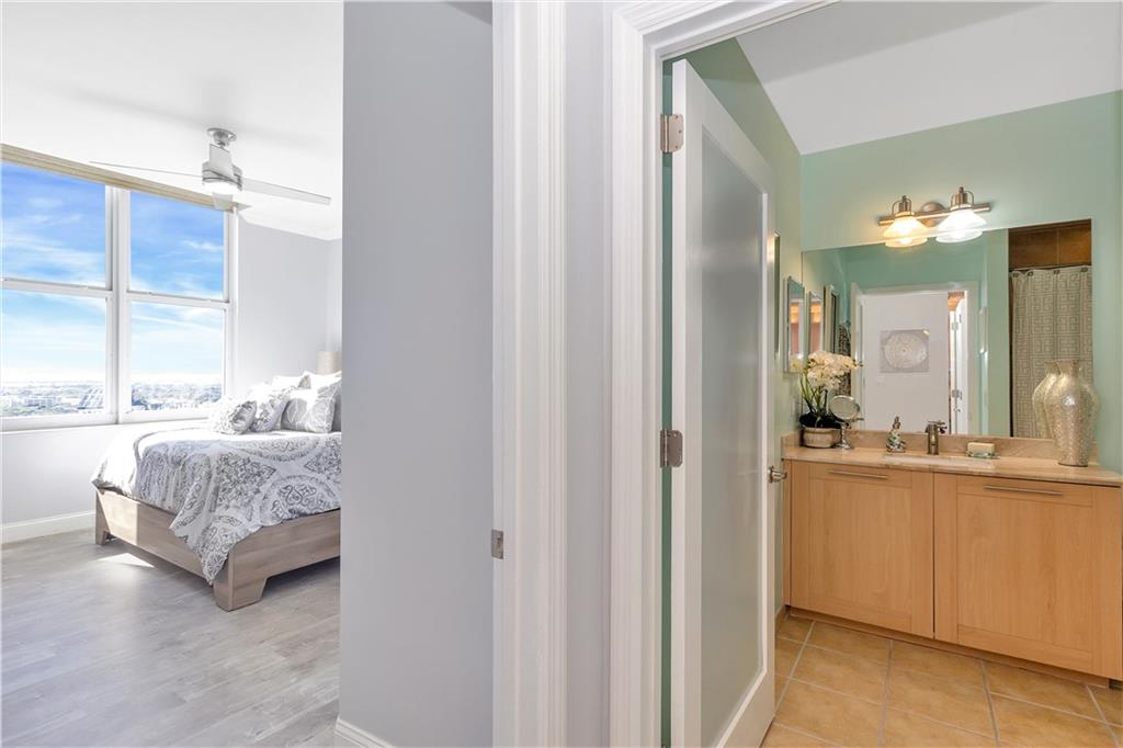 Beautifully FURNISHED, Upgraded, meticulously cared for, 1BR/1BA+DEN, SUB-PENTHOUSE unit. ONE-OF-A-KIND FLOORPLAN. *None other like this in the entire building!*STORAGE CAGE INCLUDED (Located on same floor)* Expansive southern city, ocean, port & airport views from every room/balcony. Grey "wood-look" vinyl flooring in Master bedroom. All doors, including french doors have been upgraded to modern frosted glass doors. Italian shaker cabinetry, Neutral granite countertops & backsplash in kitchen & bath. Private balcony w/ direct access to both the livingroom & slider to the den. 2 story gym w/ B-ball/Racquetball courts. Rooftop club room & pool. 6th fl BBQs, Jacuzzi, Steam room/sauna, Business center & library. 24 hour Valet & Security. Located dwntwn - walking distance to Las Olas Blvd.