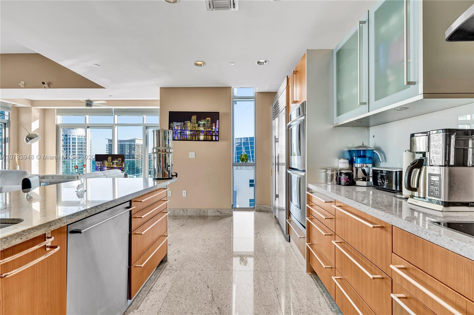 Sleek, modern Penthouse loft at Chatham at Aqua on Allison Island. 4.5 baths, Private Jacuzzi on the massive Private Rooftop deck. Amazing views of intracoAstal, ocean, golf course, and bay. 12.5 ft. ceilings, granite floors, super high end finishes. Bulthaup kitchen, Subzero fridge, 2 deeded parking with full use of 3rd parking space. Gated private island, with 24 hour security. State of the art gym, valet, concierge services, kids play room, 2 swimming pools,