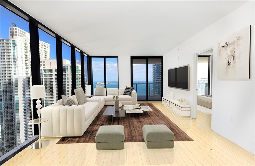 Amazing BRAND NEW, never lived in, corner unit with floor-to-ceiling impact windows with incredible views at the iconic 1010 Brickell. Kitchen with top-line SMEG appliances, best views overlooking the bay. The unit includes a private elevator, 3/3 + den, floor-to-ceiling windows with spectacular views, and a balcony with grill. Fantastic amenities include valet, rooftop cafe, pool, deck and lounge, and outdoor movie theater, co-ed Hammam spa, cryotherapy plunge pool & hot Jacuzzi, massage & treatments rooms, Finnish sauna & steam room; basketball & racquetball courts, running track, indoor heated swimming pool, gym, party room with a kitchen, open terrace & bbq, kids room with bowling, virtual golf, air hockey, ping pong. VERY EASY TO SHOW, call agent.