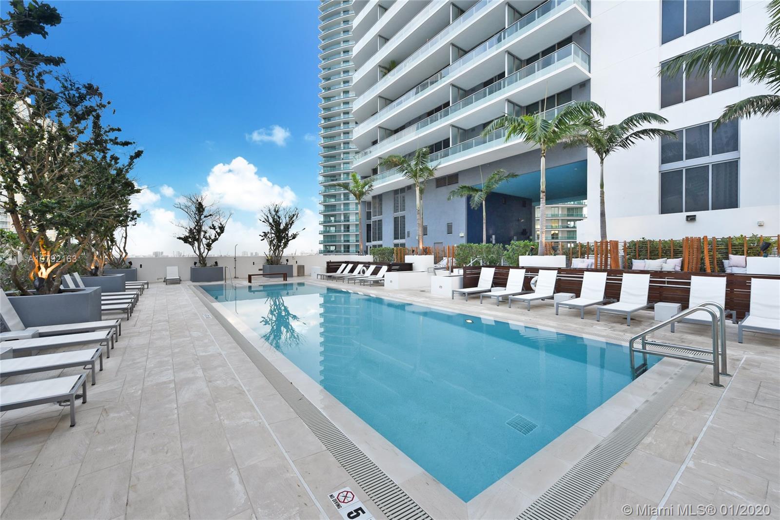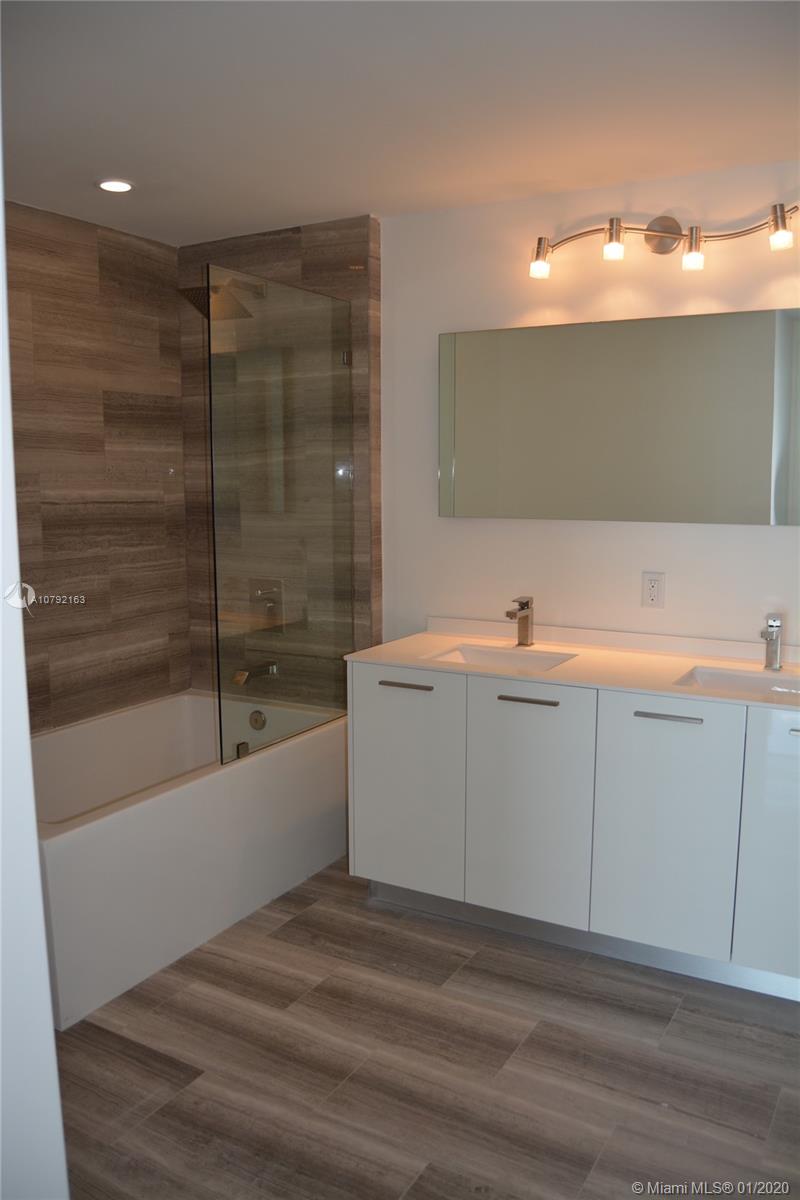 Spectacular views in the heart of Brickell. New construction. Best line in Brickell House. Spacious and bright 1 bed 1 bath apt. with floor to ceiling windows with great amenities. Bathroom door opens to bedroom and living room, great for guests. Double sink vanity. Amenities include: rooftop pool, afternoon pool, gym, spa, bbq, social room, kids rooms, valet and more. Unit is finished with white glass porcelain floors, white closets cabinetry, shades and black out (worth $30,000).
