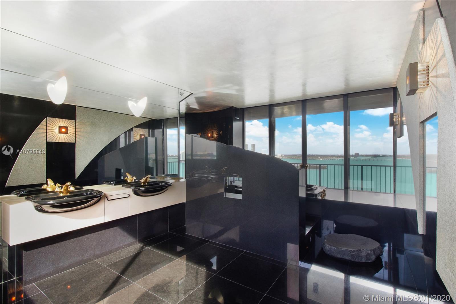Panoramic views of Biscayne Bay & the Miami skyline from this rarely available penthouse at 1000 Venetian. This full-floor penthouse offers 4,276 sq/ft under A/C, surrounded by over 9 foot tall walls of glass doors leading to an additional 1,713 sq/ft of terrace space that is perfect for entertaining. (sq/ft per architect) The apartment has south, west & north exposures, with all rooms opening directly to the oversized terraces and unobstructed water views in every direction. The apartment was originally designed to be a 5bed/5.5bath but was redesigned into its current layout as a 2bed/3bath. This is a unique opportunity to own a large penthouse with the most amazing views in town, on the red-hot Venetian Islands! Easy to show.
