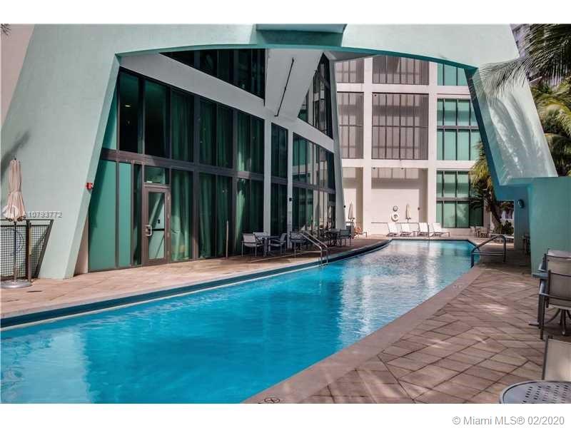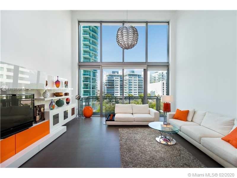 Unique opportunity to own a beachside Loft with 20ft ceilings! This amazing 5th floor loft has beautiful water views of the bay and Aqua Island. Enjoy modern living at its best in this 1 bedroom loft with gourmet chef kitchen, and top of the line finishes. Terra Beachside is a boutique 117 loft unit community, one of the few loft only developments in Miami Beach. Gated building w/ 24 hr security, 120ft heated lap pool, jacuzzi, gym and resident lounge w/billiard room. One assigned covered parking space included with unit. Furniture can be purchased. A perfect pied-a-terre.