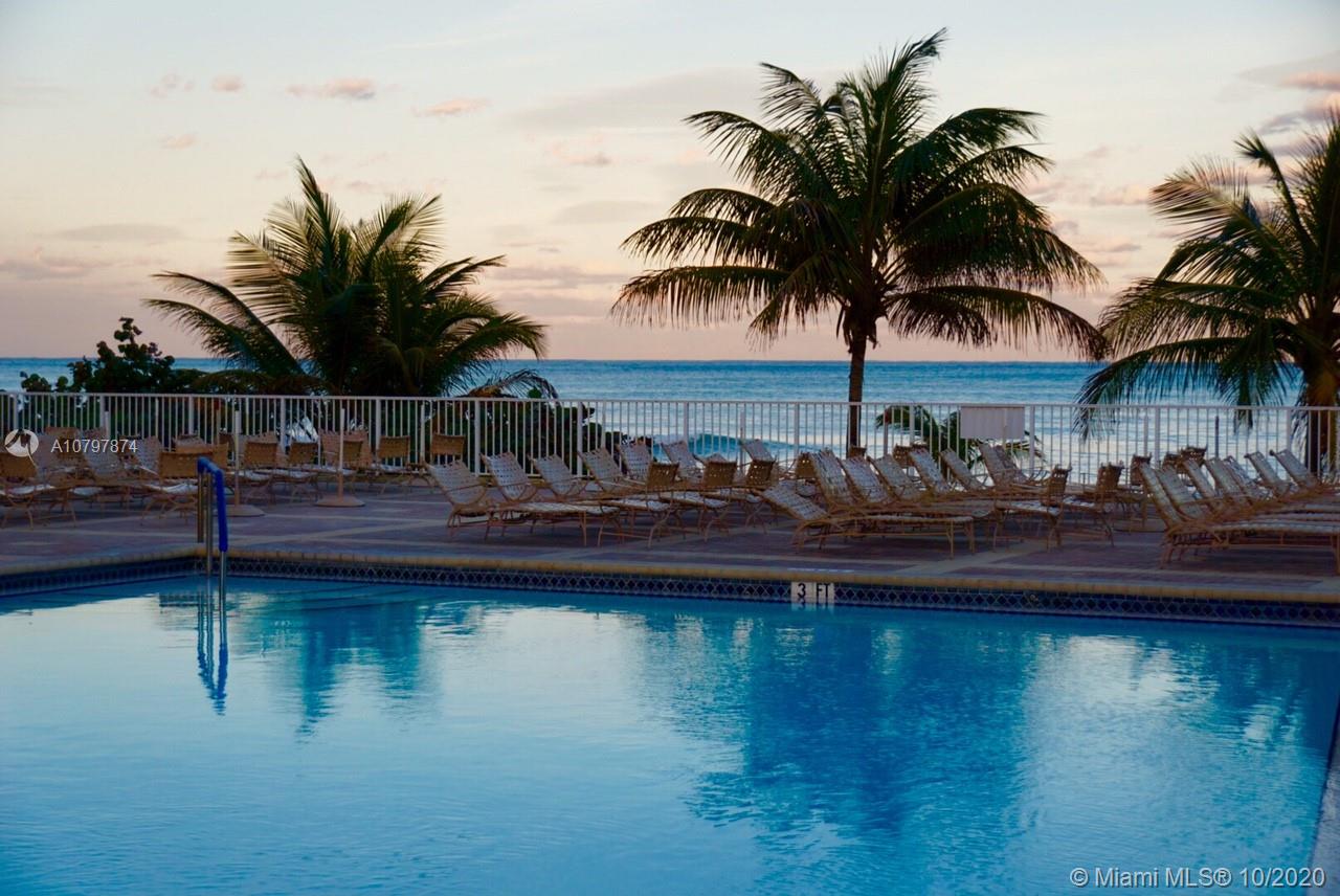 Ocean front corner unit. Floors throughout. Large balcony with amazing views. Walk in closets. A/C, Cable, Internet, Water, Garage Parking Included. Lots of Amenities. Snack bar by the pool 2 Restaurants, Bar, 2 Pools, 2 GYMS, Tennis & Basketball Courts, Putting Green, Shuffleboard, Billiards, BBQ, Courtesy bus, and much more. Centrally located minutes away from shops, dining and entertainment. Near the famous Hollywood boardwalk and Gulf Stream Casino.