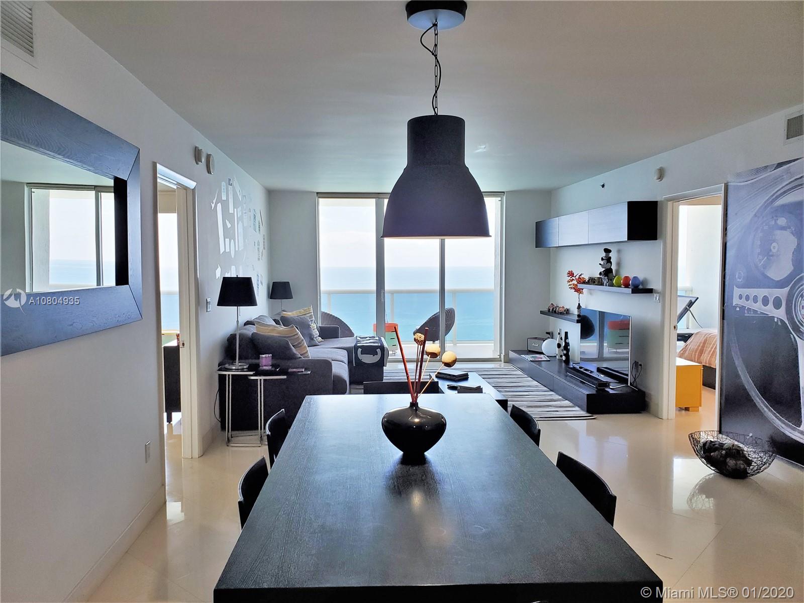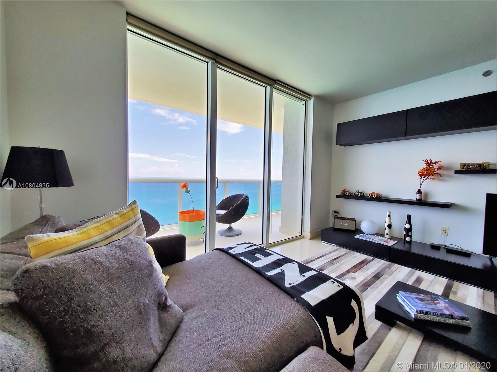 Million dollar view from this oceanfront condo. Bright and spacious 3 bedrooms and each with a full bathroom. Marble floors throughout, Italian kitchen cabinetry with granite and Stainless Steel counter tops. Modern and tasteful furniture + decoration negotiable. Floor to ceiling hurricane proof sliding doors with access to balcony from each room. 5 Star resort style amenities, magnificent 2 story lobby entrance, full time concierge, 24 hr valet parking & security, covered parking, 5 heated pools, jacuzzi, 50.000 sq.ft spa and fitness center overlooking the ocean, Pool side restaurant and Bar, beach service and more! 1 assigned space + 1 FREE valet SPACE. Minutes to shopping and restaurants, Gulfstream Race Track/Casino, Aventura Mall, I-95 and Ft. Lauderdale Airport. Priced to sell!
