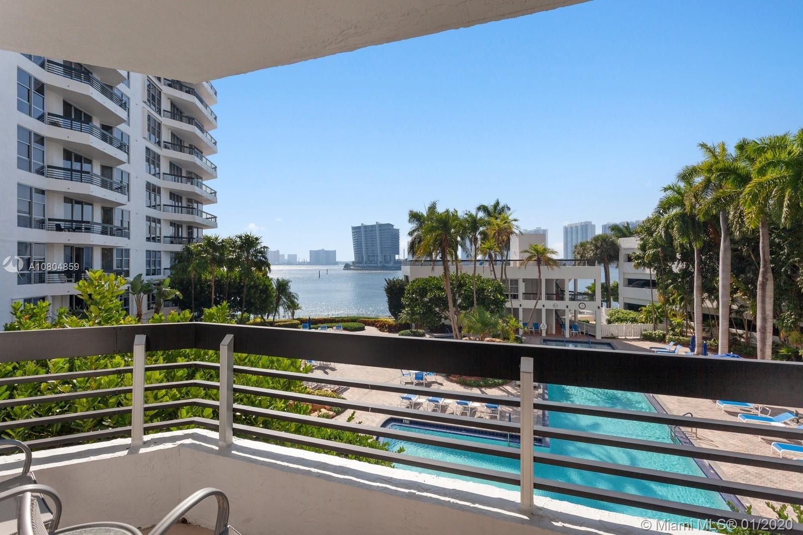 Great location with spacious floor plan.Or 3 bedroom 3 bath with all bedrooms & great room overlooking water, large pool and deluxe fitness center. Professionally decorated by Ted Fine, this property is beautifully maintained and in pristine condition. Master suite with 2 closets – 1 walk-in. Separate shower & Tub. Marble floors in kitchen and foyer and carpeting thru-out. Custom eat-in bar. Many amenities -- 24 hour security, valet ,concierge service, tennis courts, recreation room, grocery store, dry cleaners, beauty salon, pizzeria and boat marina.