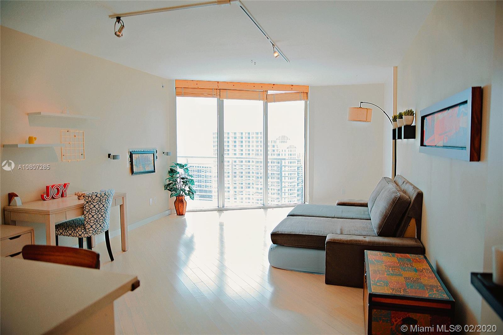 BREATHTAKING VIEW! One bathroom unit with tile floors, granite counter tops, stainless steel appliances. Italian kitchen cabinets, custom whitewashed bamboo flooring, completely remodeled bathroom. Located in Downtown Miami at Miami River and Biscayne Bay. Il Gabbiano fine restaurant downstairs. Close to Whole Foods, Silverspot Cinemas, Brickel City Ctr, restaurants, shops, transportation, few mins to 95N/S Amazing amenities, two swimming pools, jacuzzi, fitness rooms, sauna, access to INTERCONTINENTAL HOTEL and more!