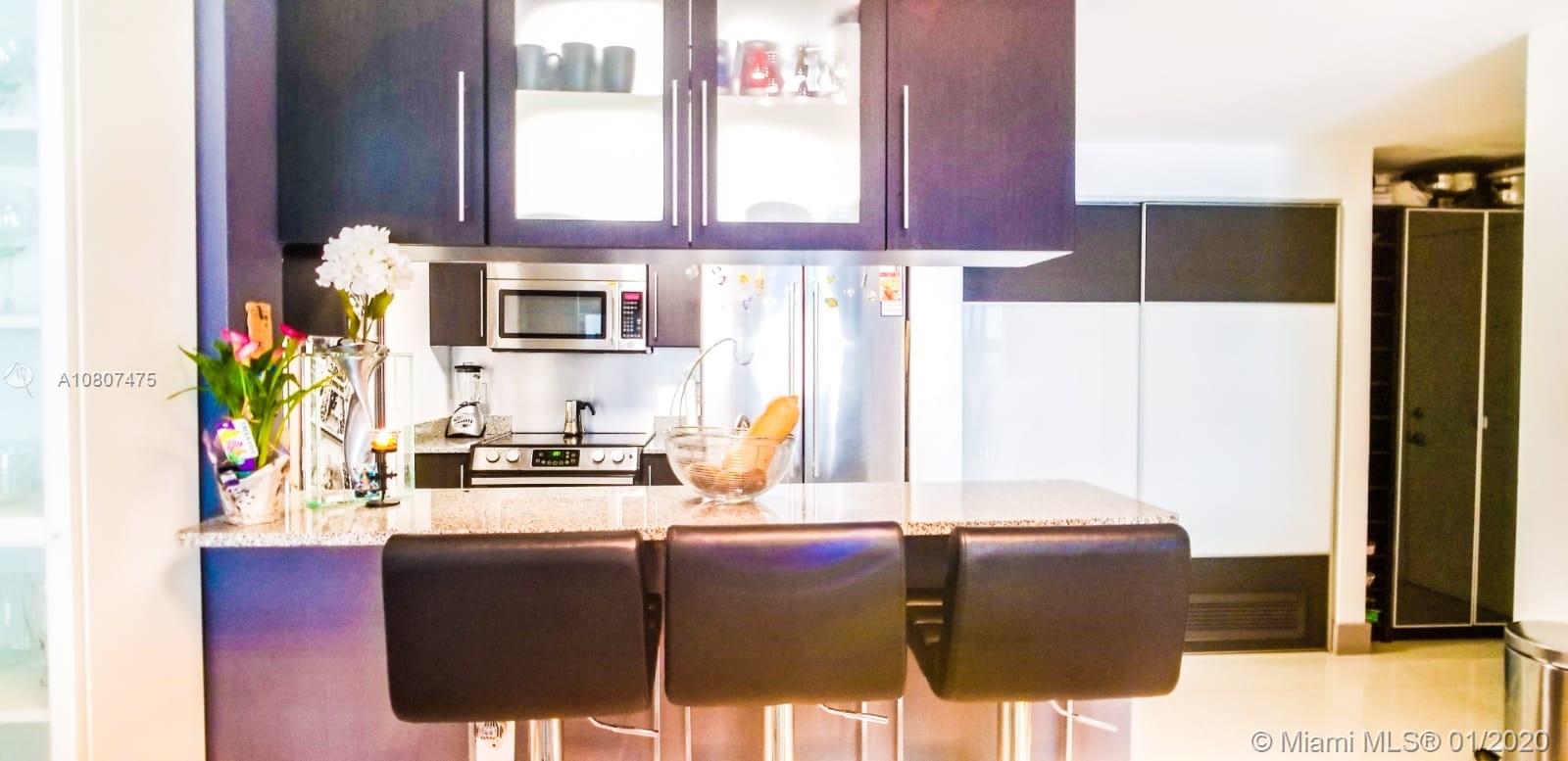 Enter this sunny and bright 2 bedroom apartment, located in the hot new Edgewater district. This well-appointed unit offers unobstructed views of Downtown and Brickell Avenue. Split floorplan. Large and spacious master bedroom offers a 2nd private balcony & ensuite bathroom. Beautifully remodeled kitchen, with new cabinets, Stainless-Steel appliances and granite counter tops. Porcelain and wood floors, impact windows, customized closets and washer dryer finish this spectacular apartment. Amenities include concierge services, pool and jacuzzi, gym, covered and guest parking. Walking distance to Publix, the Arts and Entertainment Center, American Airlines Arena, Margaret Meade Park and more. Minutes from the Expressway, airport. Can lease upon purchase,2 x a year. Pets welcome! A must see.