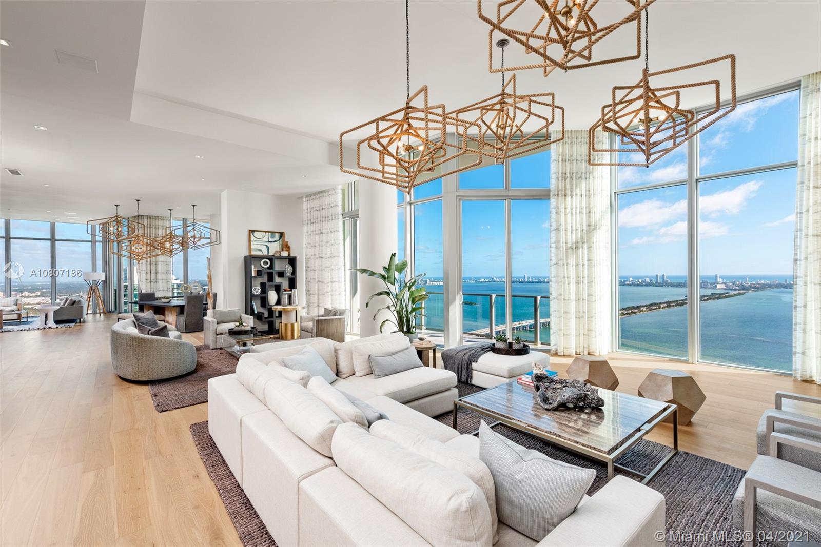 One of the largest Penthouses in Miami with 15ft ceilings, nearly 8,000sf interior and over 2,000sf exterior. Sure to impress with 5 bedrooms, 5 bathrooms, 3 powder rooms, a private rooftop pool, outdoor kitchen, 1,000sf master suite, second-floor club room with junior master suite, wine room, and 6 parking spaces. This Penthouse offers stunning water views, island views, and city views where you can enjoy sunrise and sunsets alike. The scale of the grand living room with 15ft ceilings is breathtaking. Completed 2017, Biscayne Beach offers an incredible central location and a bevy of amenities and services: beach with zero-entry pool and cabanas, upper-level pool with attached club and party rooms, 2 tennis courts, waterfront fitness center, state of the art spa, concierge, valet and more.