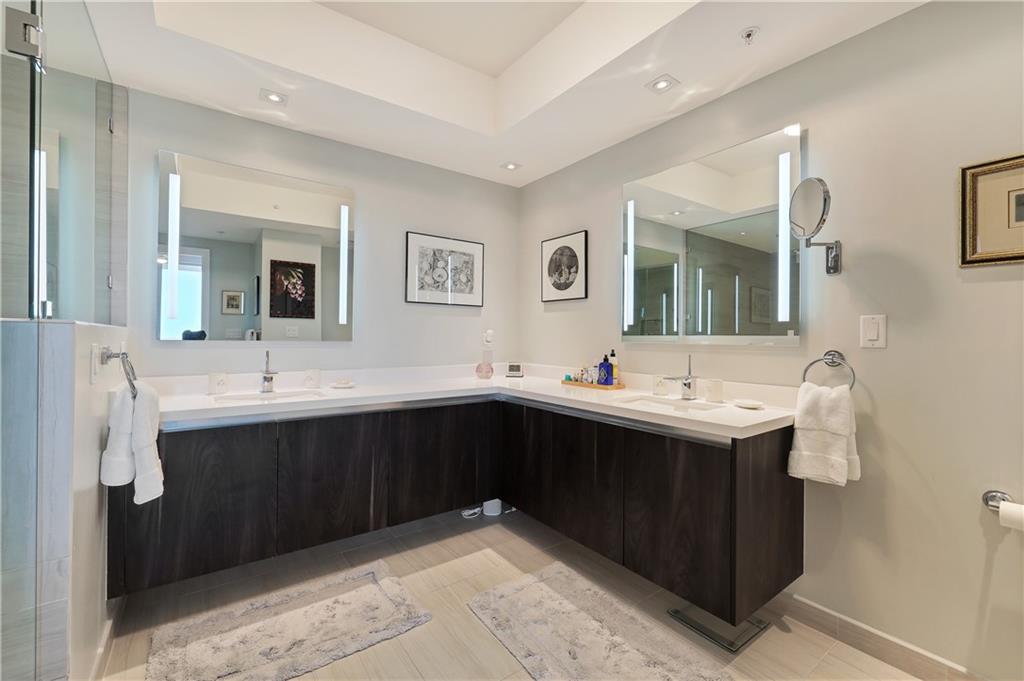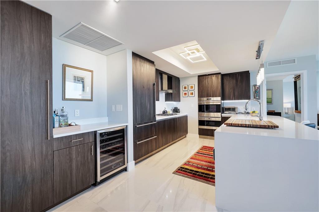 Seller has spared no expense in making this two bed, two bath city view condo a showpiece. Ceiling was lowered to allow for LED lighting in Living/Dining area and soffits in master also. High end fixtures installed with smart home control. Kitchen offers Sub Zero refrigerator/freezer, Wolf gas cooktop and stove, built in microwave and added wine bar and surrounding cabinetry. Waterfall quartz countertops. Built in drawers were installed for more use of cabinet space. 47 inch tile floors throughout. Over 56 feet of balcony with outdoor built in BBQ grill and sweeping city views. Master bedroom features walk in closet, master bath with walk in shower and separate tub, lots of counter space. Riva offers 5 star amenities. Pool, Spa, fitness, front desk, all in a zen like atmosphere.