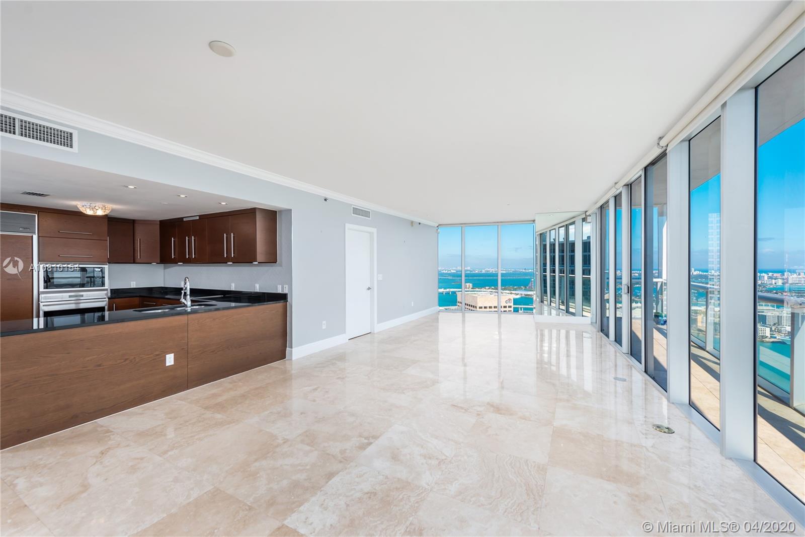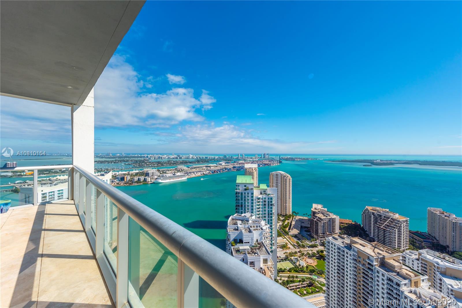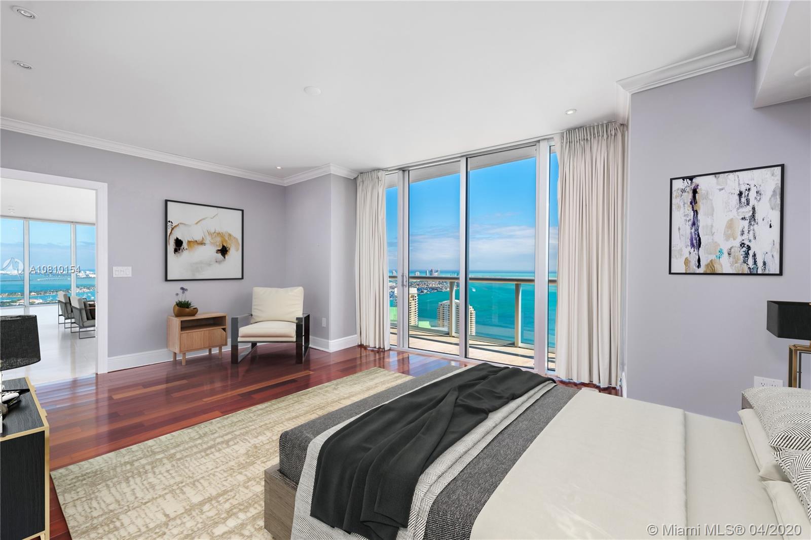 Perched atop Icon Brickell, rarely available two-level corner penthouse on the 57th floor. Spectacular views over Miami Beach, Fisher Island, Key Biscayne and the Port of Miami. 2,538 sq ft oceanfront penthouse with indoor and outdoor living space sprawls over two stories, with oversized terraces and sweeping panoramic Biscayne Bay and city views. Penthouse 5701 offers three-bedrooms, three-baths and powder room, kitchen with Italian cabinetry, master suite with walk-in closets, en-suite bathroom with spa bath. Second floor features family room and an oversized terrace with wet bar - perfect for entertaining. Philippe Starck designed Icon Brickell offers world-class amenities including three pools, full-service spa, fitness center, 24-hour concierge and on-site fine dining restaurants.