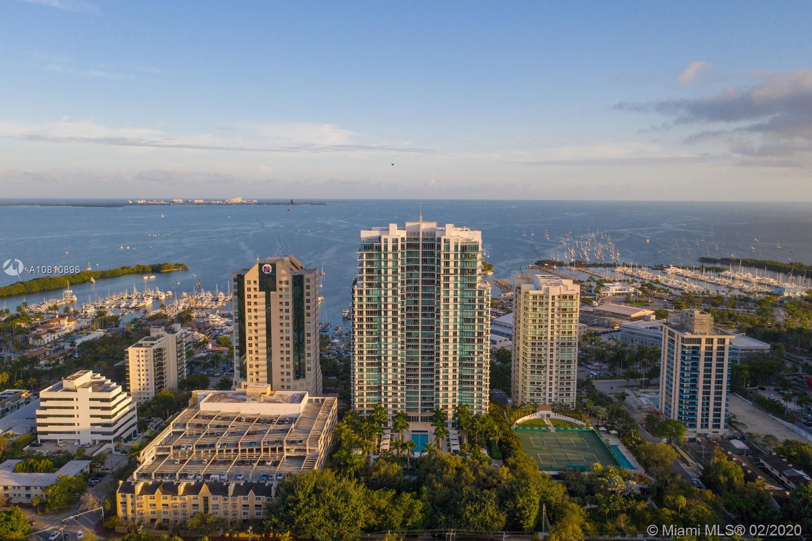 The highest level in the 07 line; beautifully designed split floor plan unit, floor to ceiling glass and dual terraces which maximize the natural light and views of downtown Coral Gables from each room. Enjoy the amenities of this luxury full-service building; world class Olympic size pool, gym, spa, tennis court, half-basketball court and much more. Walking distance to The Village of Coconut Grove, Fresh Market grocery, marinas, and parks. The furniture is offered for purchase, sold separately.