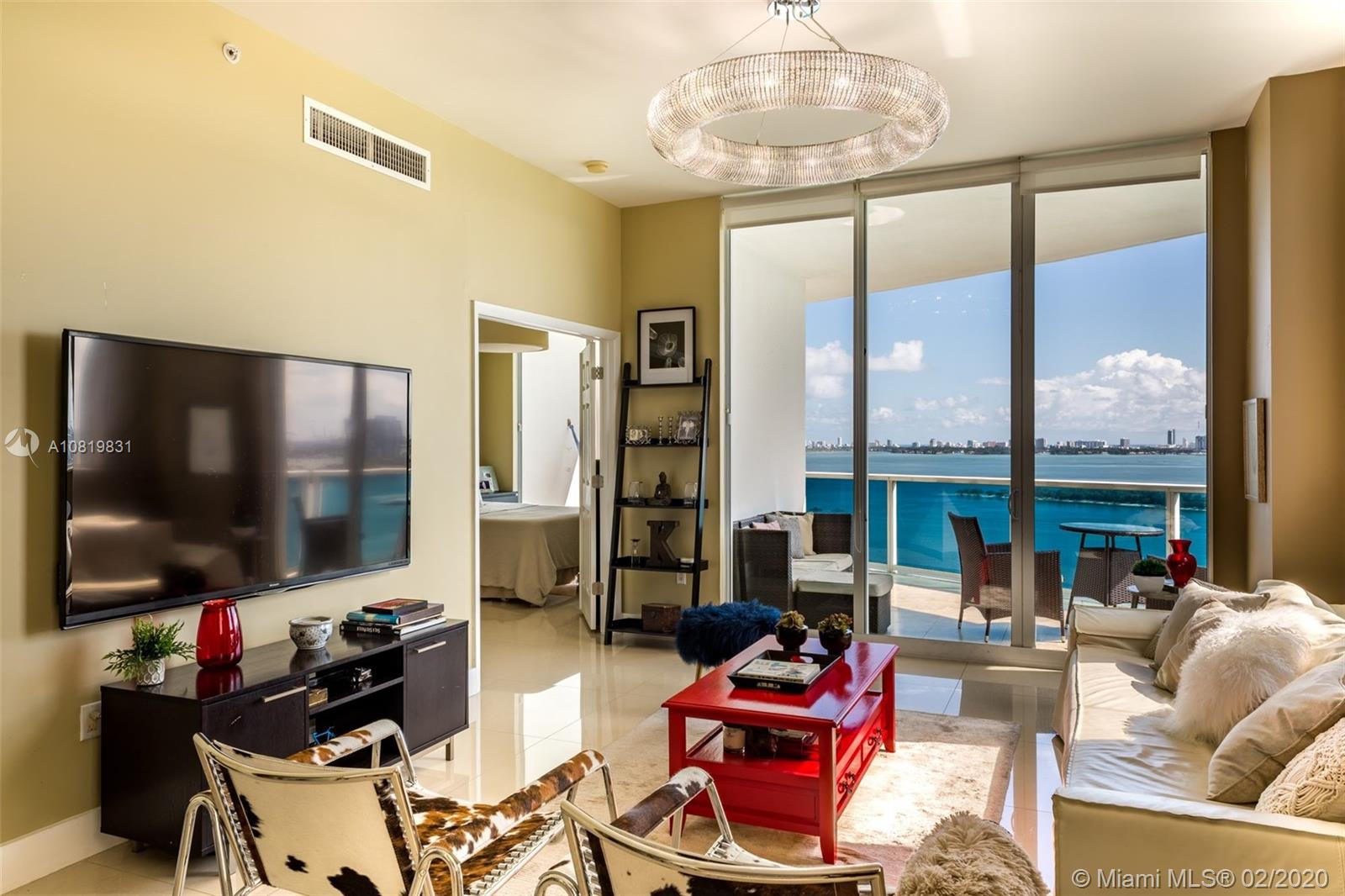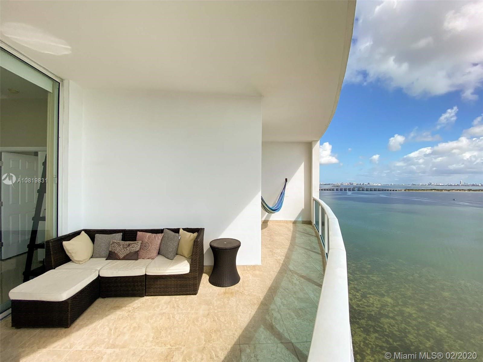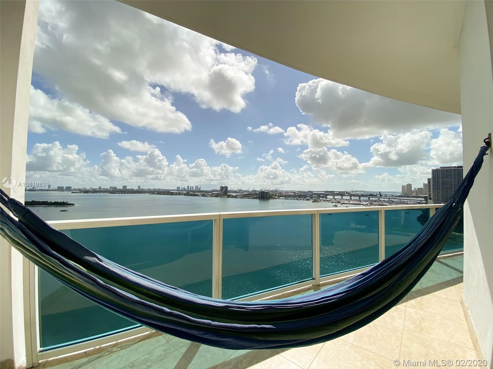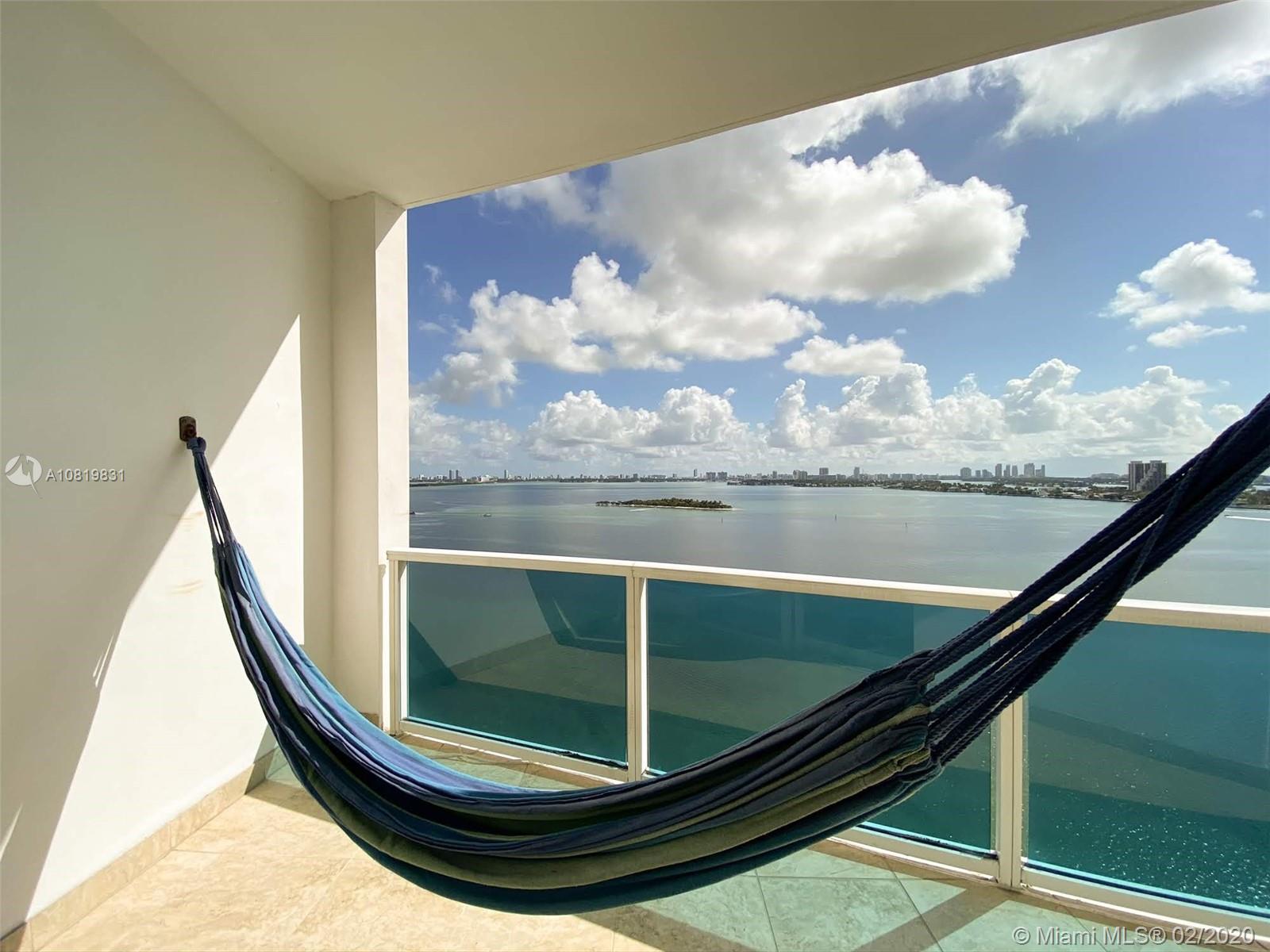 Boutique Condo with one of the most beautiful waterfront views in Miami - Edgewater. Enjoy breathless Bay views in a roomy well-finished unit with 1,400 interior sq. ft., high ceilings, and fantastic balcony! This unit actually has 3 Separated Balconies Turnkey with stainless steel appliances, gorgeous fixtures, granite counter-tops, bathrooms, with fantastic porcelain floors, impact windows and doors. Building offers: A secure lobby + elevator and a 24hr doorman. 1 assigned parking space with a second rented spot available. Guest spots can be found at the entrance. Complete Gym Pool and Barbecue Place for owner's entertainment. Prime central location, close to Wynwood and Design District, SoBe and Miami Downtown. Miami International Airport is 15 minutes away!
