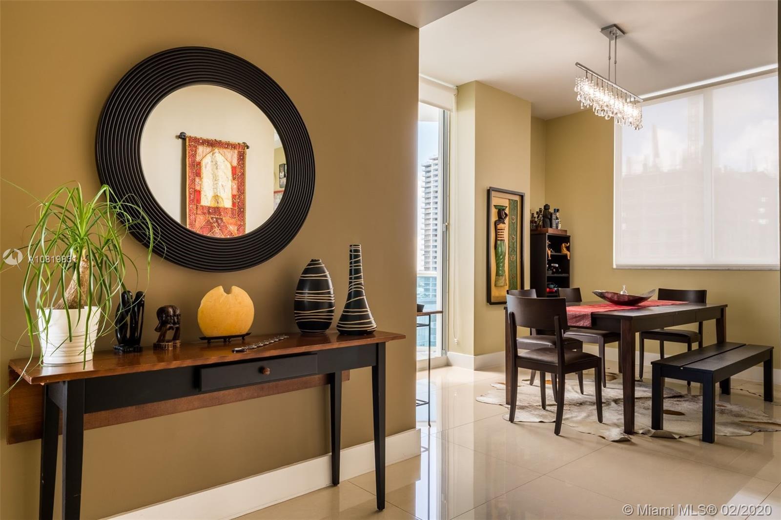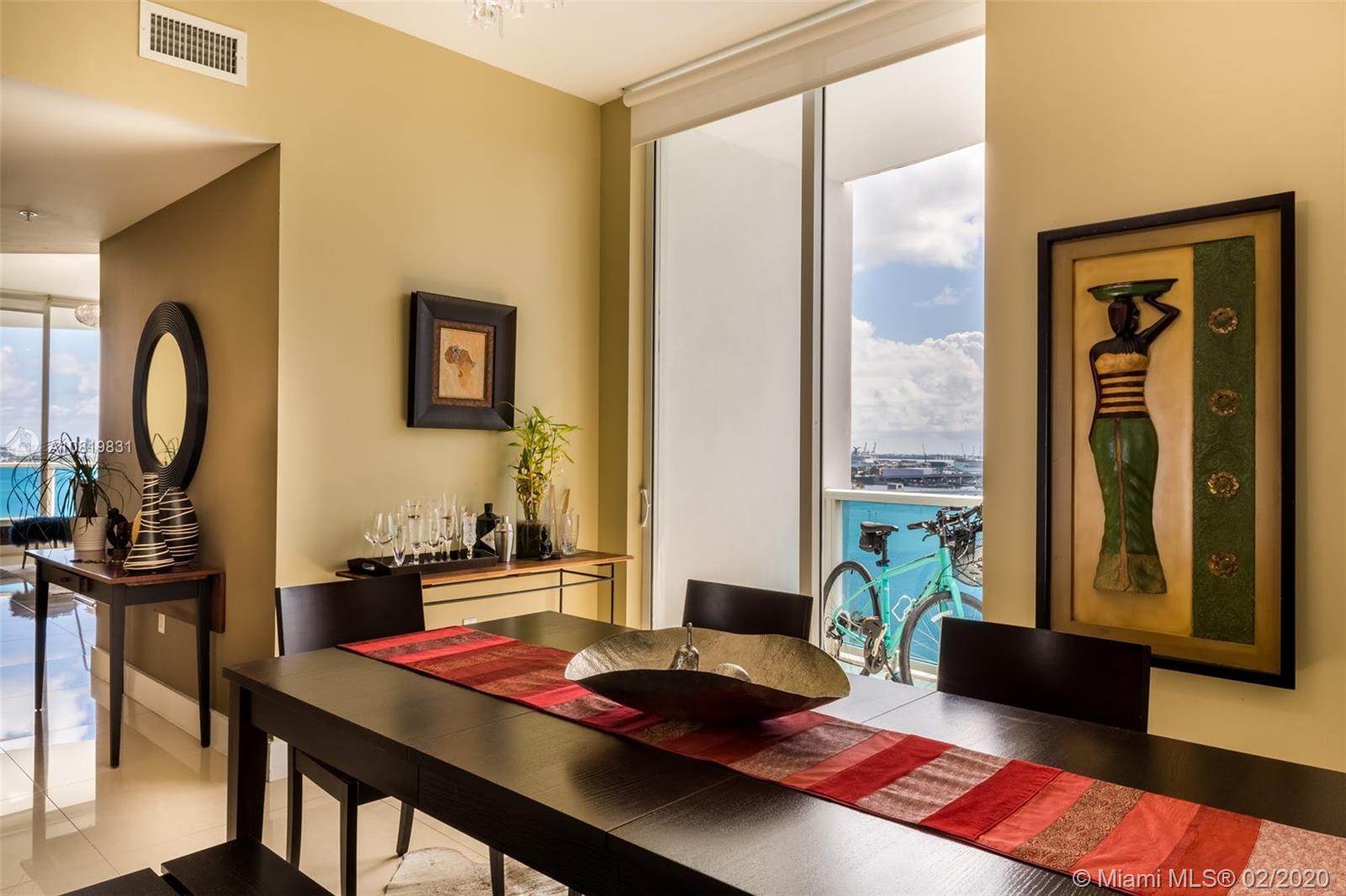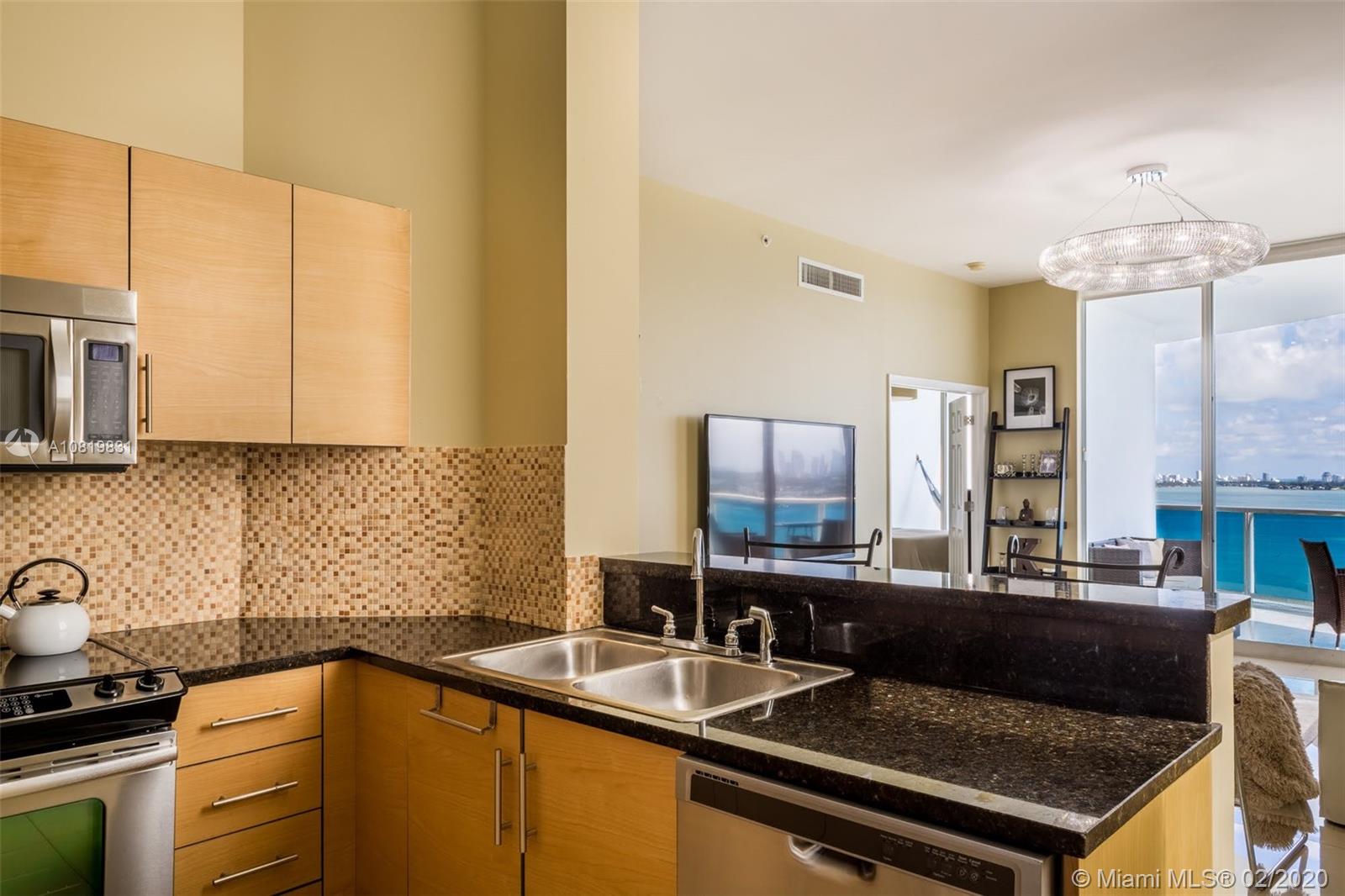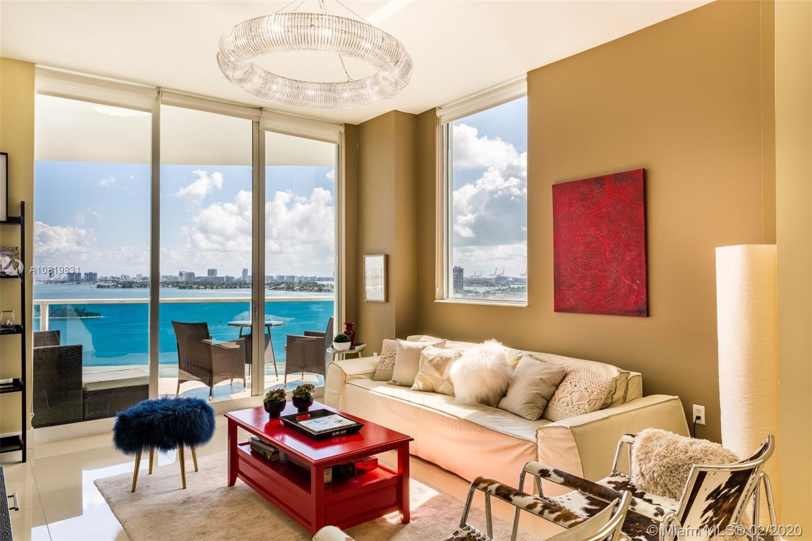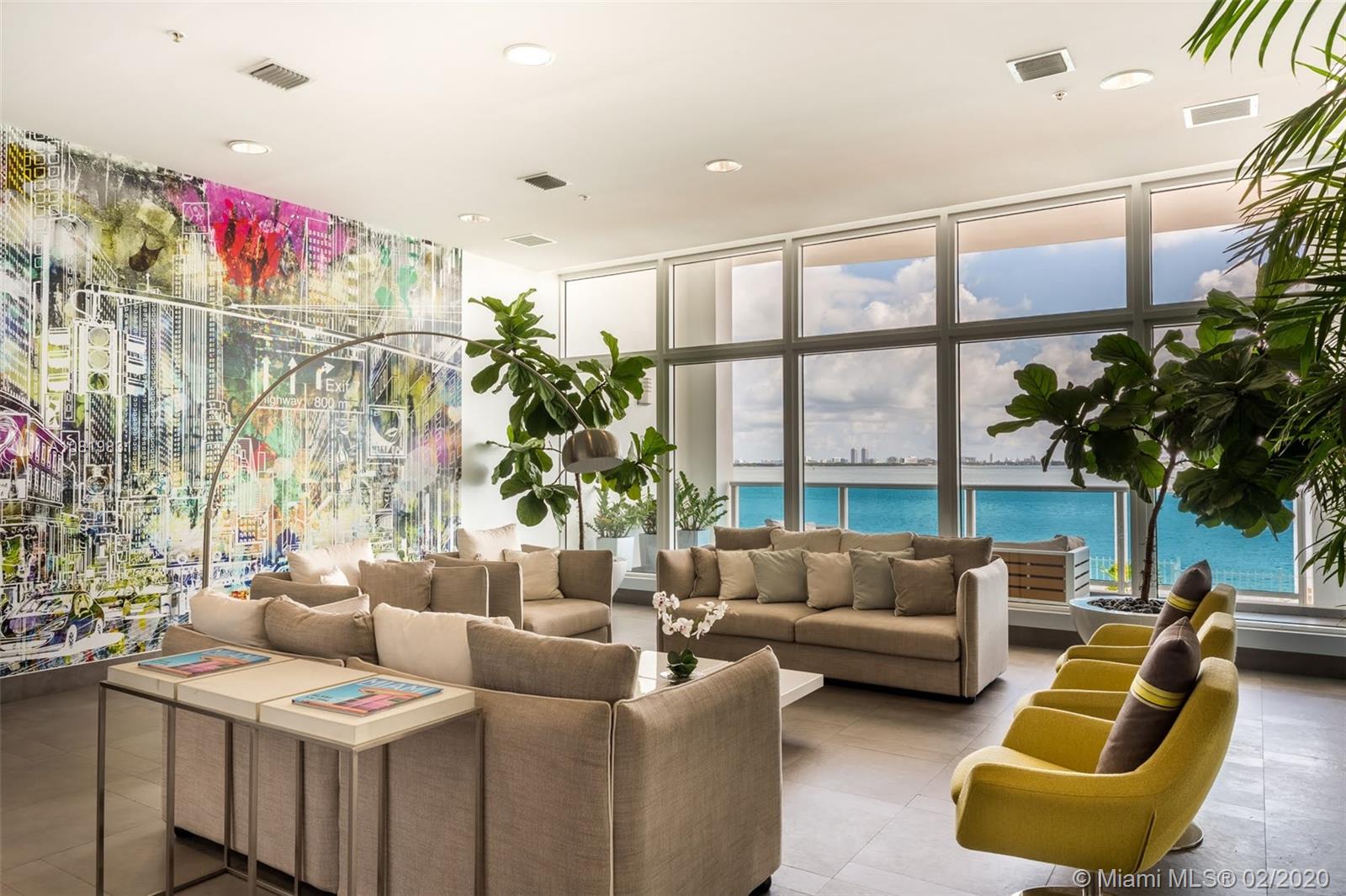 Boutique Condo with one of the most beautiful waterfront views in Miami - Edgewater. Enjoy breathless Bay views in a roomy well-finished unit with 1,400 interior sq. ft., high ceilings, and fantastic balcony! This unit actually has 3 Separated Balconies Turnkey with stainless steel appliances, gorgeous fixtures, granite counter-tops, bathrooms, with fantastic porcelain floors, impact windows and doors. Building offers: A secure lobby + elevator and a 24hr doorman. 1 assigned parking space with a second rented spot available. Guest spots can be found at the entrance. Complete Gym Pool and Barbecue Place for owner's entertainment. Prime central location, close to Wynwood and Design District, SoBe and Miami Downtown. Miami International Airport is 15 minutes away!