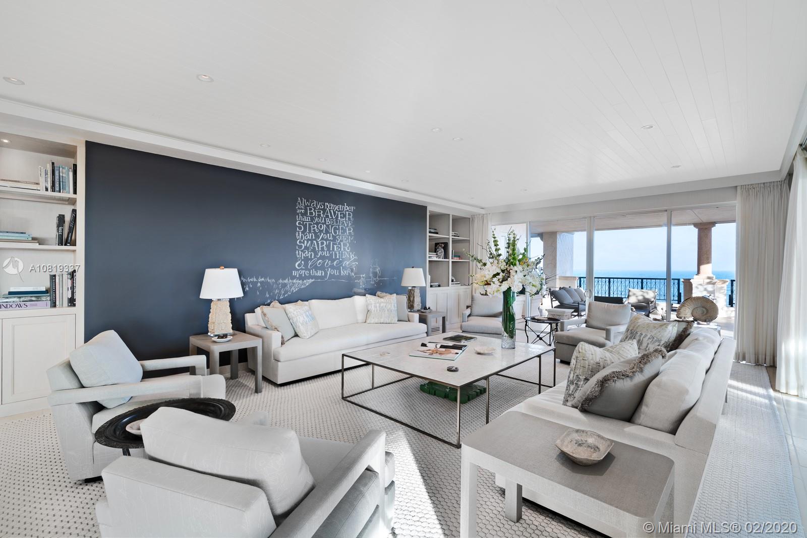 One of a kind Oceanside corner Unit boasts 3,692 SF. Spectacular Ocean and City views with over 1,800 SF of wrap around terrace. Exquisite 3 Bed/ 4.5 bath renovated by world class builder, Handcraft. The home features Crestron home automation system, Miele appliances and Waterworks fixtures throughout. His/Hers Master baths and walk-in closets with Luxurious Steam Shower. Two parking spots, one golf cart spot, and large storage unit.