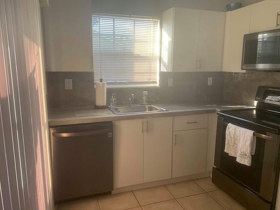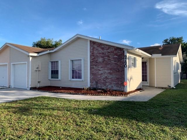 Beautifully maintained attached villa. vaulted ceilings. Split bedroom plan. Kitchen updated, newer appliances. A/C less than a year old. Bathrooms updated. Tile and laminate flooring. Fenced patio area. Wide greenspace. Accordion Hurricane Shutters. 1 car garage and 2 car driveway for plenty of parking. Hard to find 4 bedroom family home. Low HOA fees.