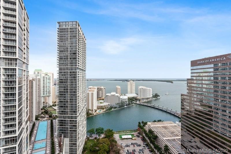 Priced to SELL! - Spacious 1 bedroom + Den - Large and Private balcony with unobstructed panoramic water views and city skyline. Ample master bedroom with spacious walking closets - European style kitchen fully equipped with GE monogram appliances, A Full-Service Building with Unmatched 5 Star Resort Style Amenities - 2 swimming pools, gym, Spa, Jacuzzi tub, theater room, 1 parking space, valet, security, footsteps from the best in Brickell. A must-see property!