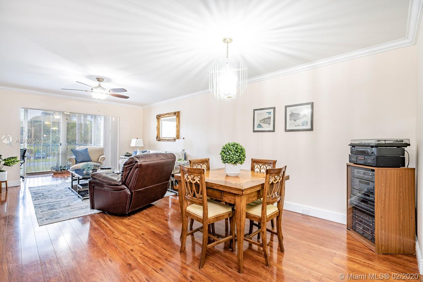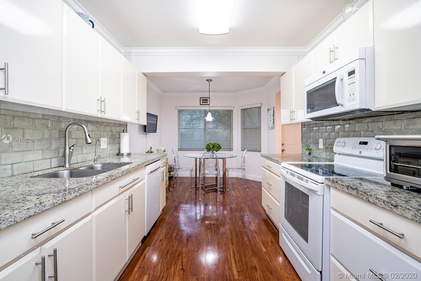Beautifully remodeled 2/2 is ready to move in! Property features redone kitchen (granite countertops, new cabinets, backsplash), wood floors throughout, crown moulding, pool view, updated baths and so much more. Make this your home today!