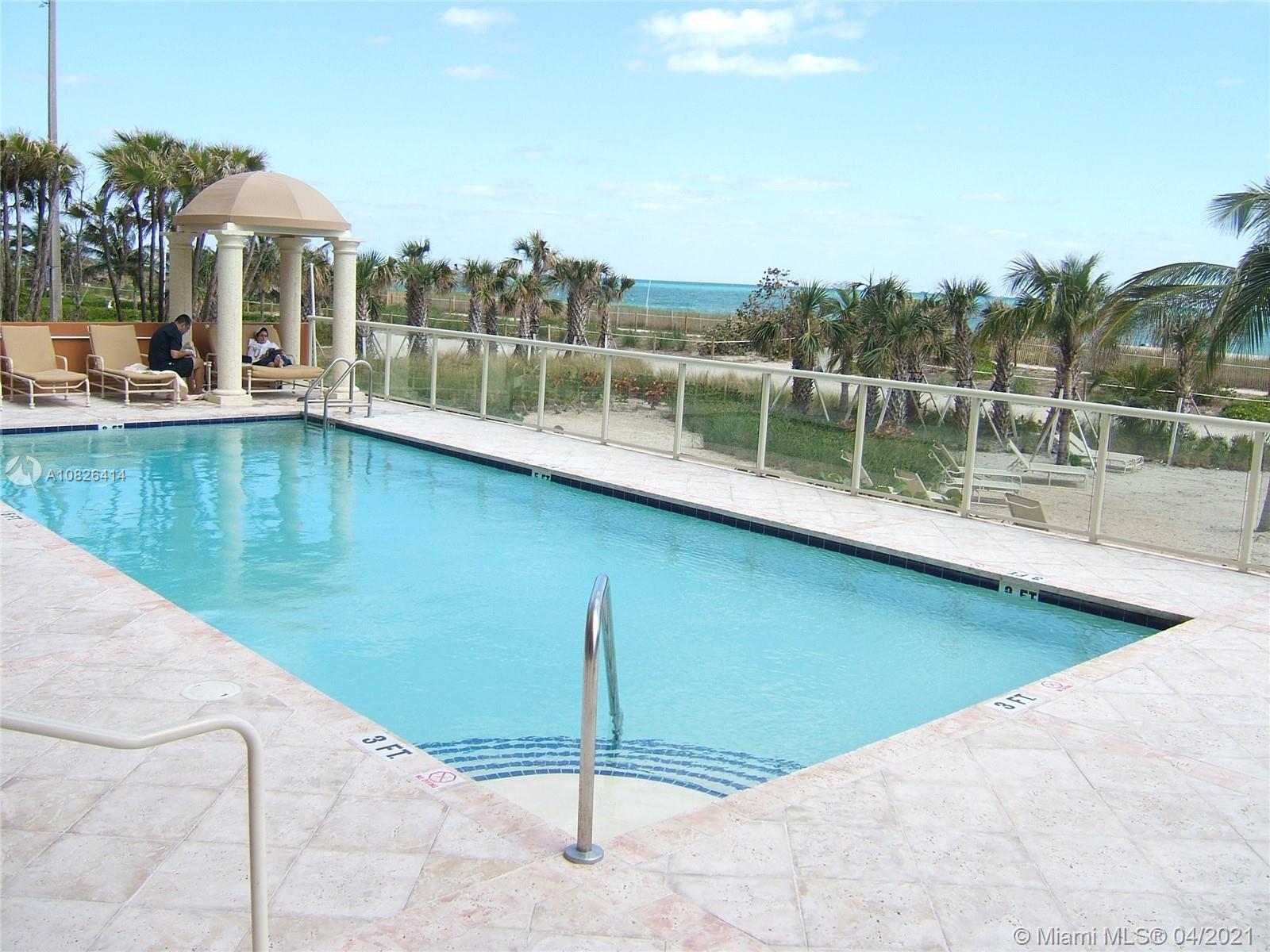 OCEANFRONT LUXURY CONDO WITH OCEAN VIEWS. 1 BEDROOM + DEN EASILY CONVERTIBLE TO SECOND BEDROOM, 2 COMPLETE BATHS, MARBLE FLOORS, EUROPEAN STYLE KITCHEN WITH STAINLESS STEEL APPLIANCES AND GRANITE COUNTER TOPS. WASHER & DRYER INSIDE UNIT. PRIVATE BEACH, POOL, HEALTH CLUB, CONCIERGE AND VALET 24HS. WALKING DISTANCE TO SHOPS, MARKET, RESTAURANTS. 2 BLOCKS FROM BAL HARBOUR SHOP. FANTASTIC OPPORTUNITY! PERFECT FOR VACATIONS! VERY EASY TO SHOW. CALL AGENT FOR MORE DETAILS.