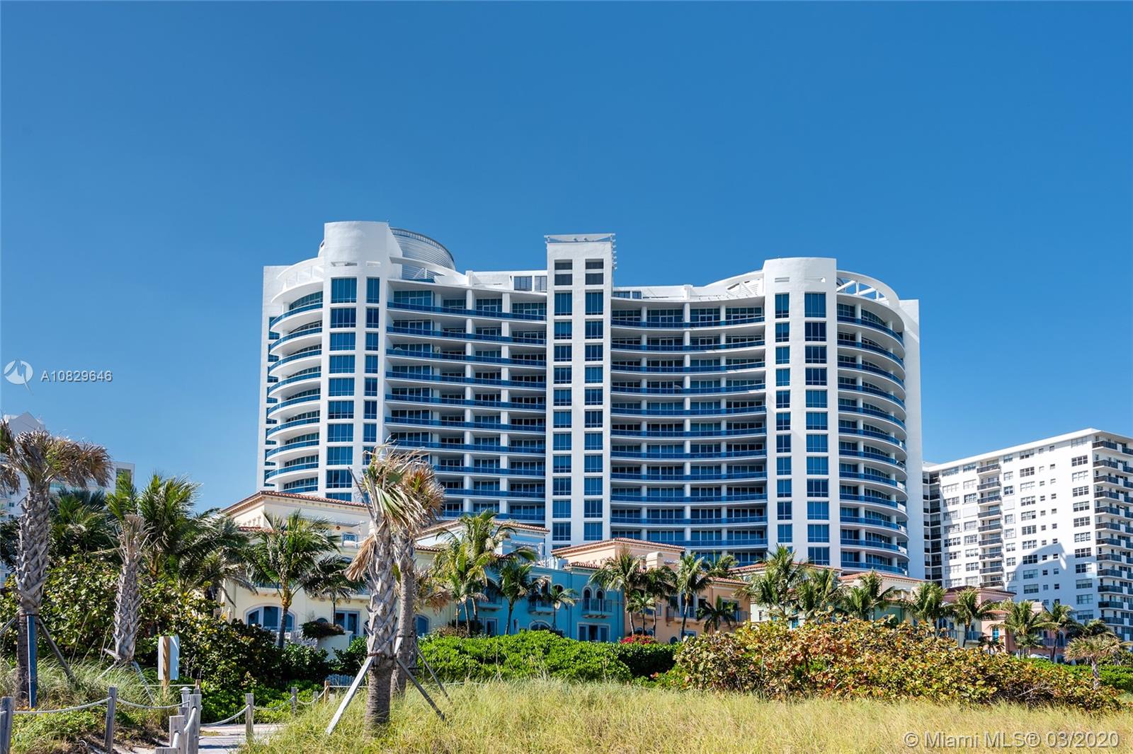 This beautiful Southeast facing unit at the exclusive Bath Club has been expertly designed. The 4BR/4+1BA unit features exquisite limestone floors, private elevator entry, 3,640 interior SF & an open flow thru living & dining room floor plan w/comfortable family/media room. The unit has 2 terraces; 1 w/amazing sunrise & ocean views, the 2nd w/bay & city views. An open gourmet kitchen sports a large center island w/eat-in seating, top-of-the-line Miele & Sub-Zero appliances & custom Italian Aran Cucine cabinetry. Spacious ocean-side principal suite features separate dual walk-in closets, direct access to the ocean-side terrace & an exotic marble principal bath w/walk-in glass/marble shower & spa tub. 3 additional bedrooms each w/en-suite baths. Enjoy the Bath Club’s 5-Star amenities.